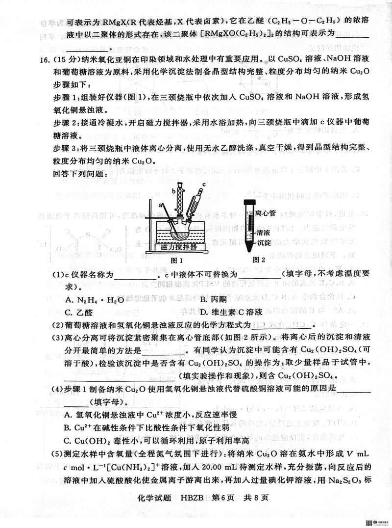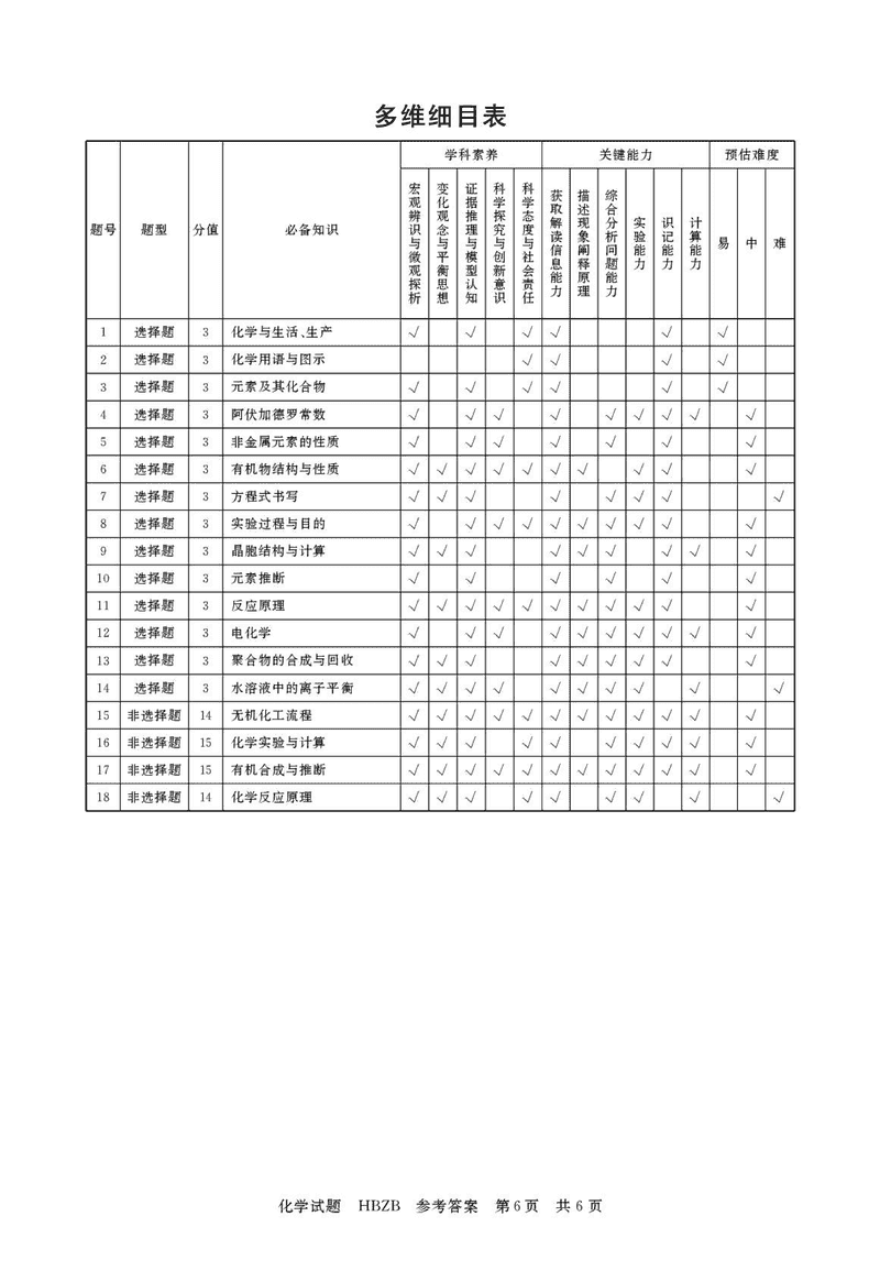 化学(河北版)试题及答案解析