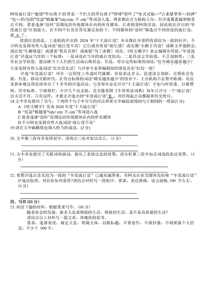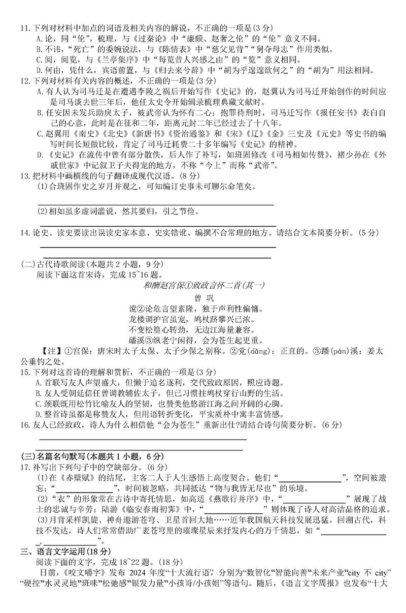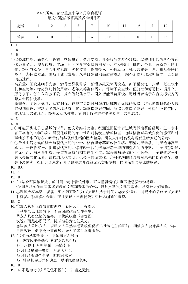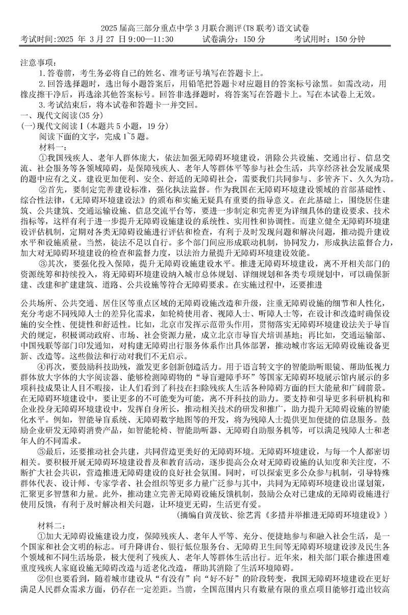 2025届八省八校T8联考高三3月联合测评语文试题及答案汇总
