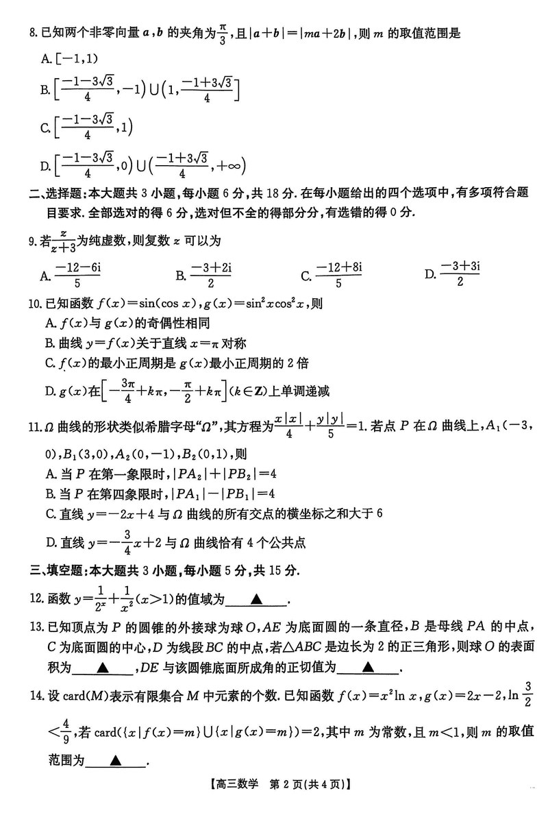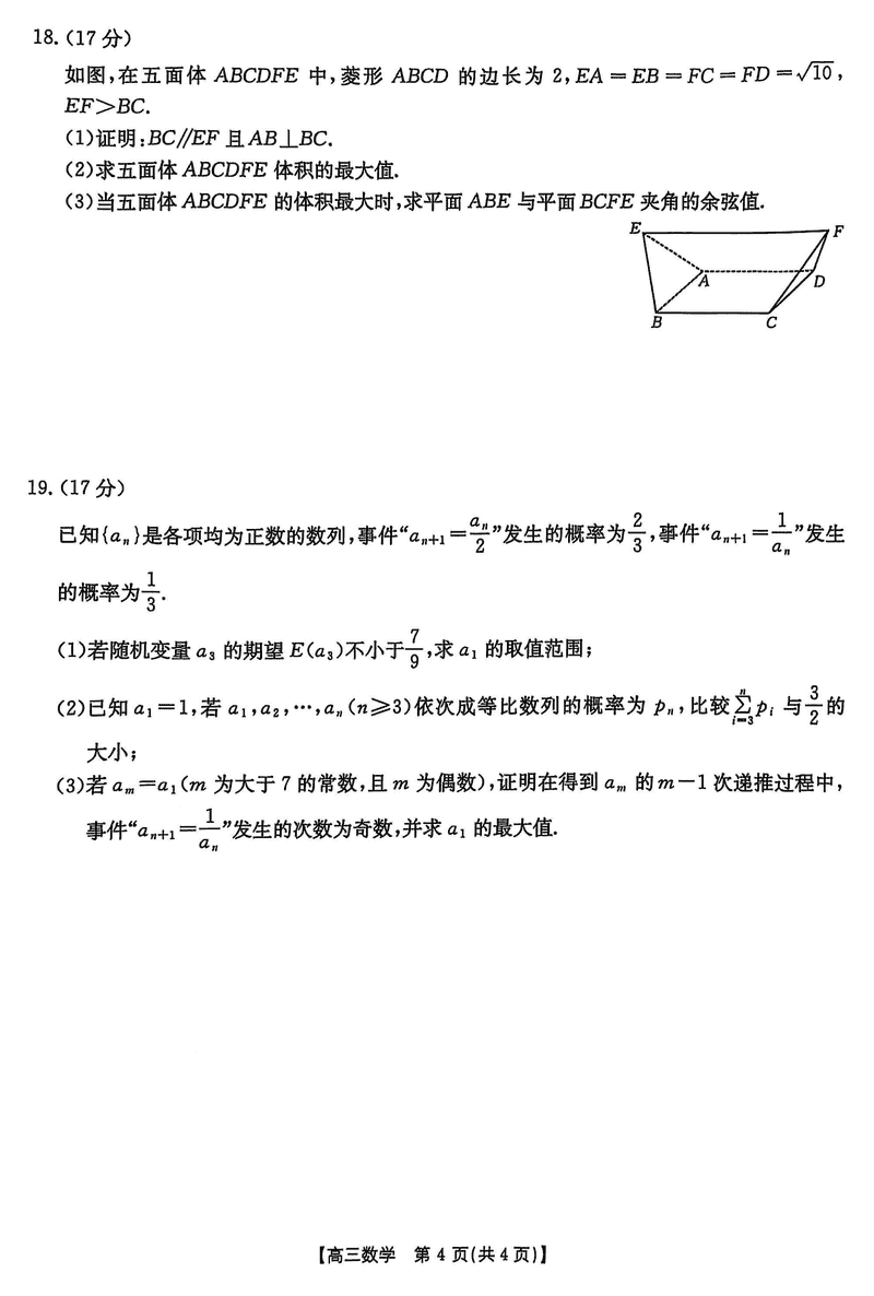 2025年安徽省示范高中皖北协作区第27届联考数学试题及答案汇总
