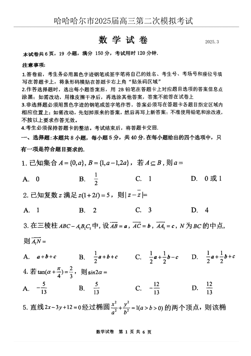 齐齐哈尔市2025届高三下学期二模数学试题及答案 时间:2025-03-31 黑龙江 数学试题 齐齐哈尔市2025届高三下学期二模数学考试已于近日开考,为方便考生考后及时查看考试情况,查漏补缺、弥补不足,本文整理了试题答案解析相关信息! 汇总:齐齐哈尔市2025届高三下学期二模考试试题及答案汇总 数学试题及答案解析