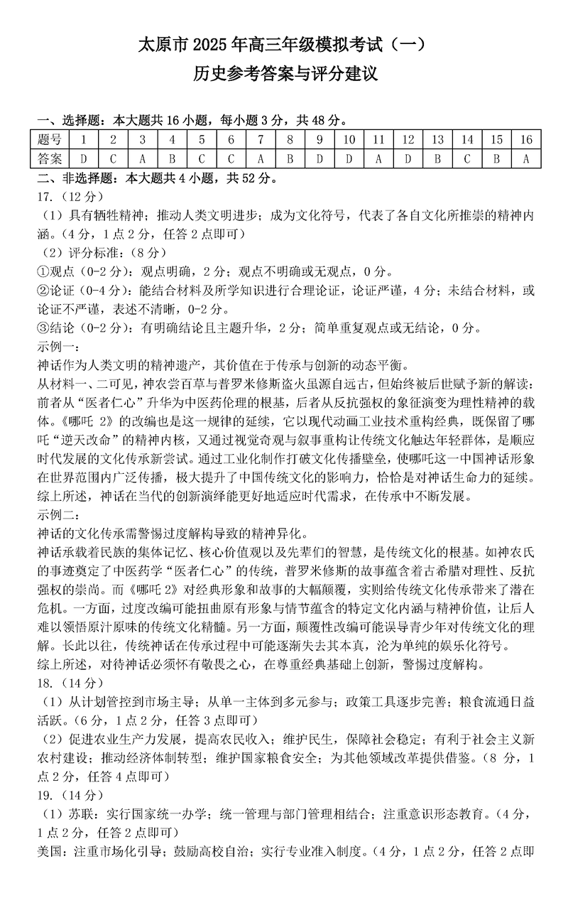 太原市2025年高三年级模拟考试(一)历史试题及答案 时间:2025-03-31 山西 文综试题 太原市2025年高三年级模拟考试(一)历史考试已于近日开考,为方便考生考后及时查看考试情况,查漏补缺、弥补不足,本文整理了试题答案解析相关信息! 汇总:太原市2025年高三年级模拟考试(一)试题及答案汇总 历史试题及答案解析