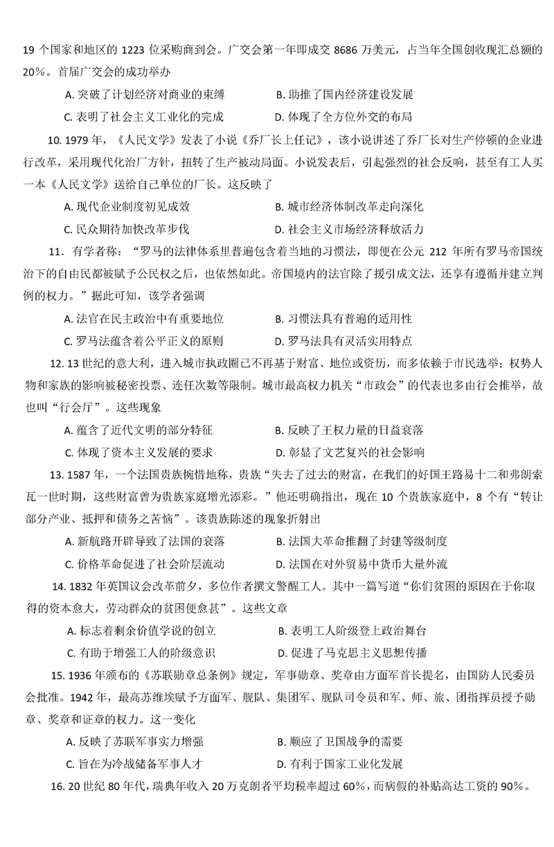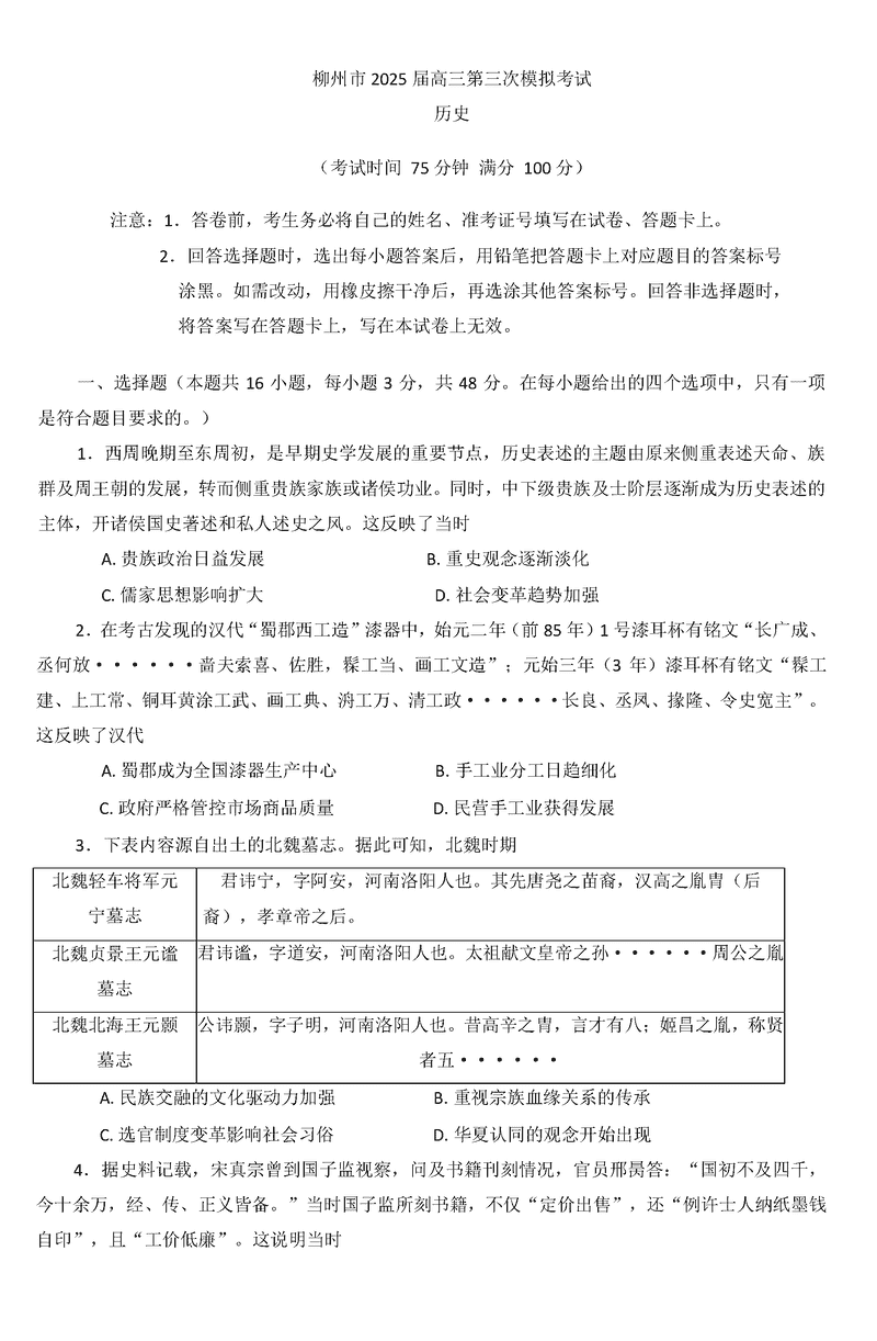柳州三模2025届高三第三次模考历史试题及答案 时间:2025-03-31 广东 文综试题 柳州三模2025届高三第三次模考历史考试已于近日开考,为方便考生考后及时查看考试情况,查漏补缺、弥补不足,本文整理了试题答案解析相关信息! 汇总:柳州三模2025届高三第三次模拟考试试题及答案汇总 历史试题及答案解析