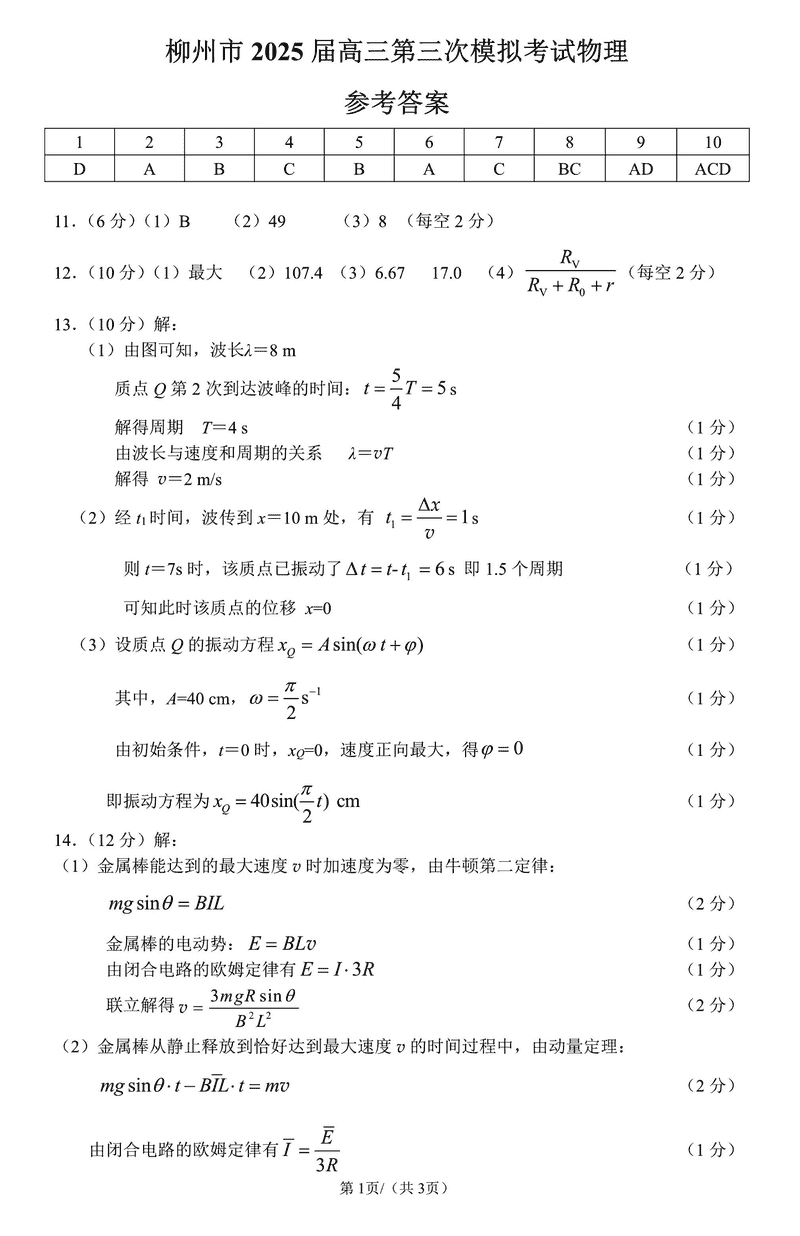 柳州三模2025届高三第三次模考物理试题及答案 时间:2025-03-31 广西 理综试题 柳州三模2025届高三第三次模考物理考试已于近日开考,为方便考生考后及时查看考试情况,查漏补缺、弥补不足,本文整理了试题答案解析相关信息! 汇总:柳州三模2025届高三第三次模拟考试试题及答案汇总 物理试题及答案解析