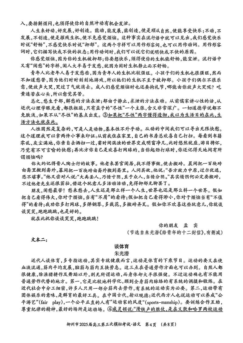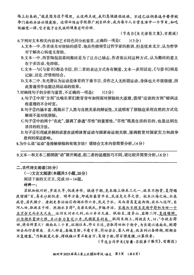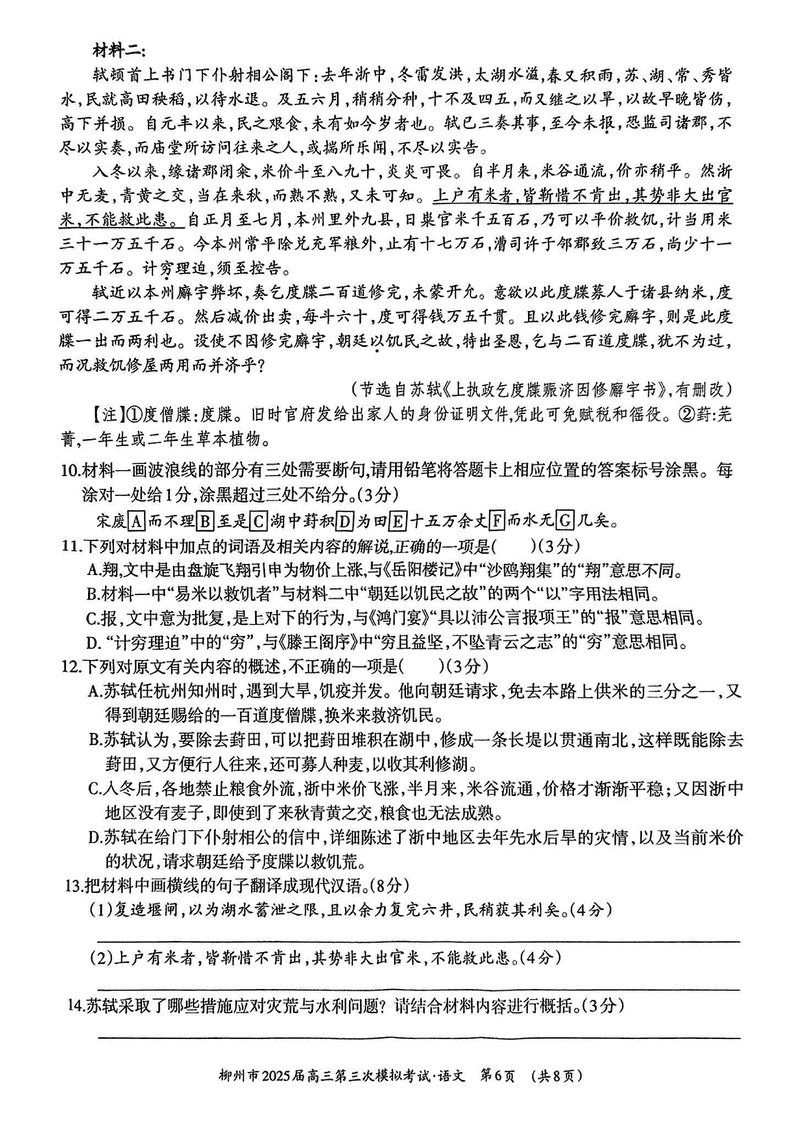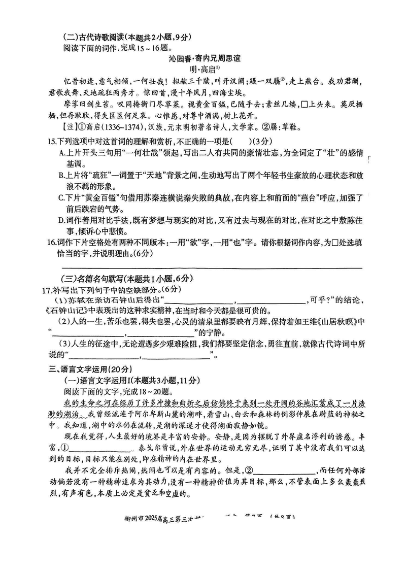柳州三模2025届高三第三次模考语文试题及答案 时间:2025-03-31 广西 语文试题 柳州三模2025届高三第三次模考语文考试已于近日开考,为方便考生考后及时查看考试情况,查漏补缺、弥补不足,本文整理了试题答案解析相关信息! 汇总:柳州三模2025届高三第三次模拟考试试题及答案汇总 语文试题及答案解析