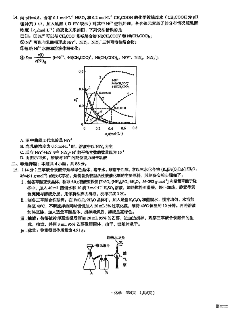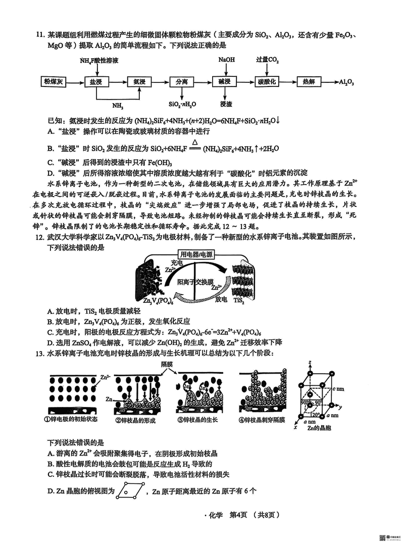 河北省2025届高三学生全过程纵向评价(四)化学试题及答案