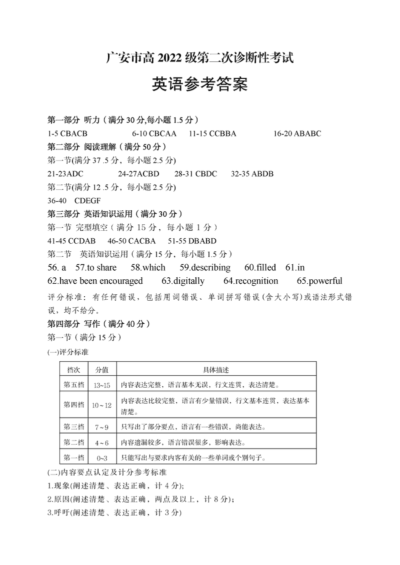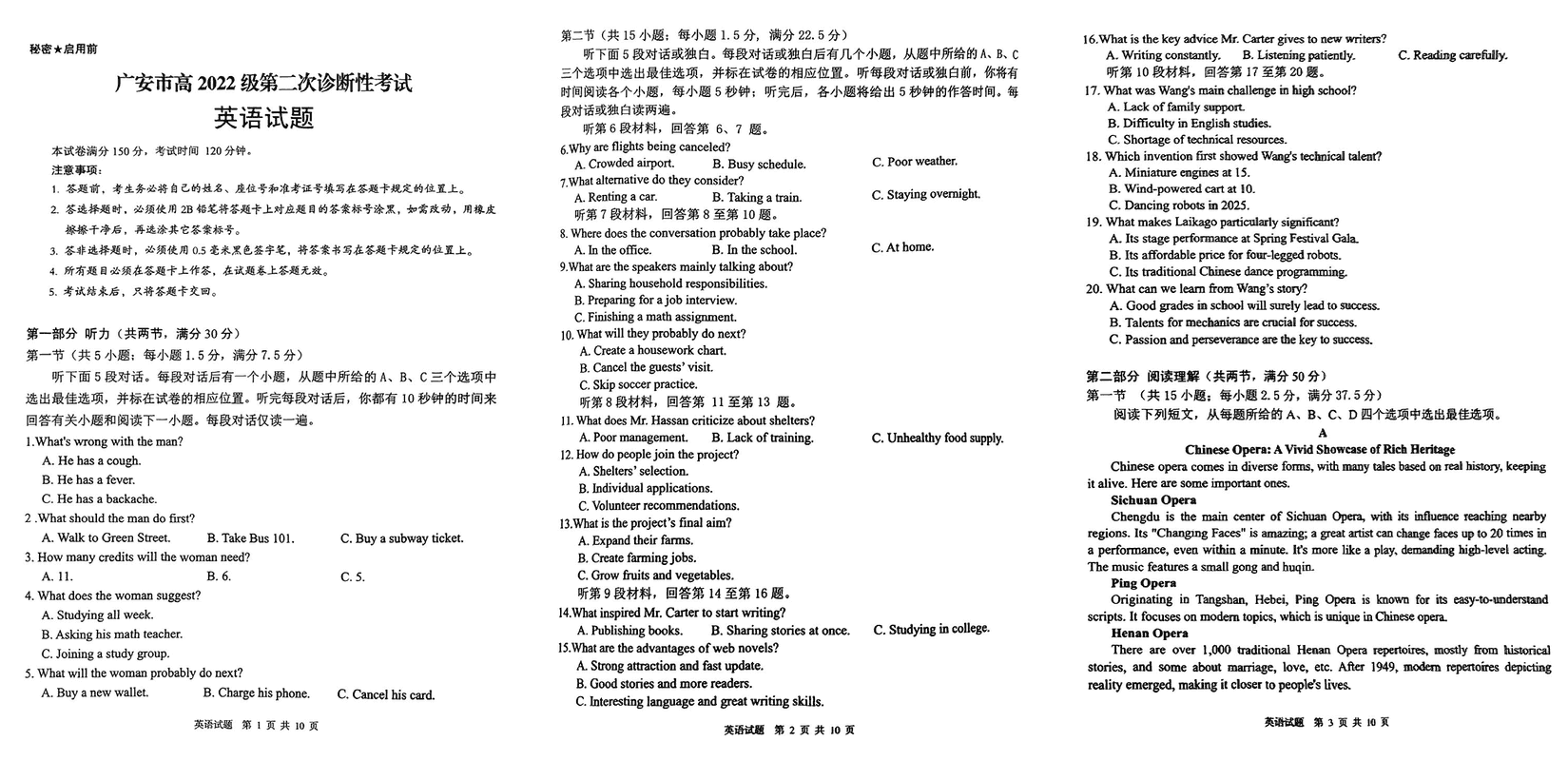 四川六市二诊2025届广安第二次诊断性英语试题及答案 时间:2025-03-31 四川 英语试题 四川六市二诊2025届广安第二次诊断性英语考试已于近日开考,为方便考生考后及时查看考试情况,查漏补缺、弥补不足,本文整理了试题答案解析相关信息! 汇总:四川六市二诊2025届第二次诊断性考试试题及答案汇总 英语试题及答案解析