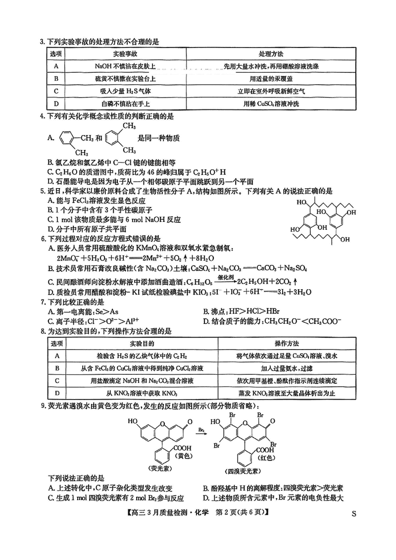 九师联盟2025届高三3月质量检测化学试题及答案 时间:2025-03-31 理综试题 九师联盟2025届高三3月质量检测化学考试已于近日开考,为方便考生考后及时查看考试情况,查漏补缺、弥补不足,本文整理了试题答案解析相关信息! 汇总:九师联盟2025届高三3月质量检测试题及答案汇总 化学试题及答案解析