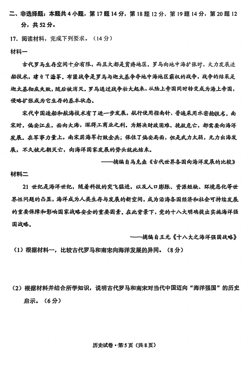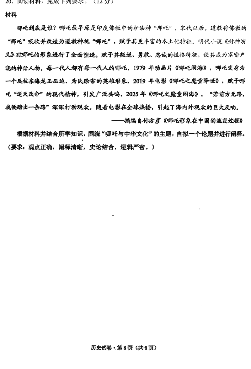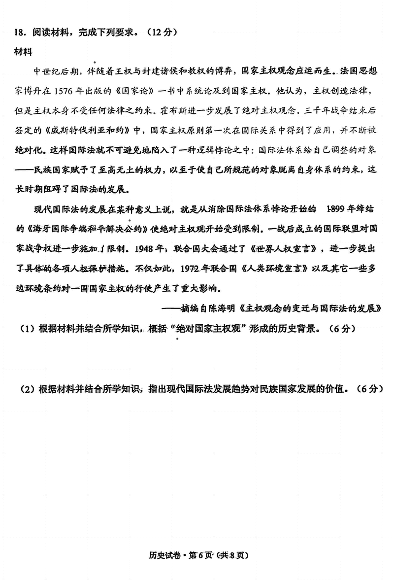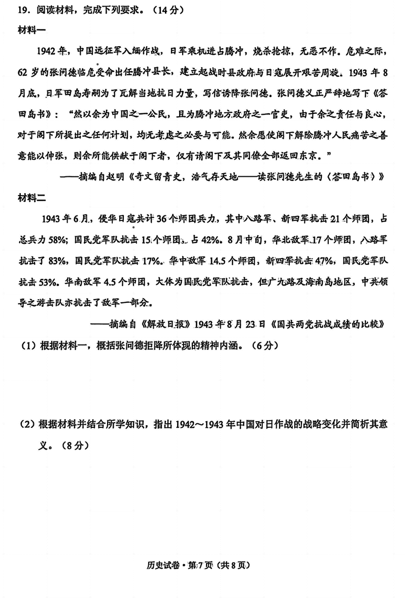 昆明市2025届“三诊一模”高三复习教学质检历史试题及答案
