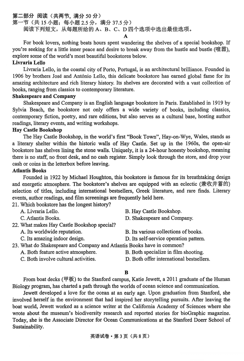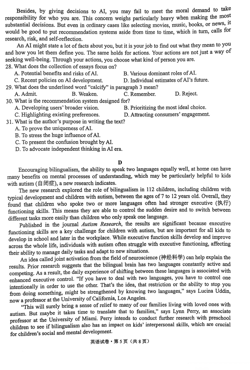 昆明市2025届“三诊一模”高三复习教学质检英语试题及答案