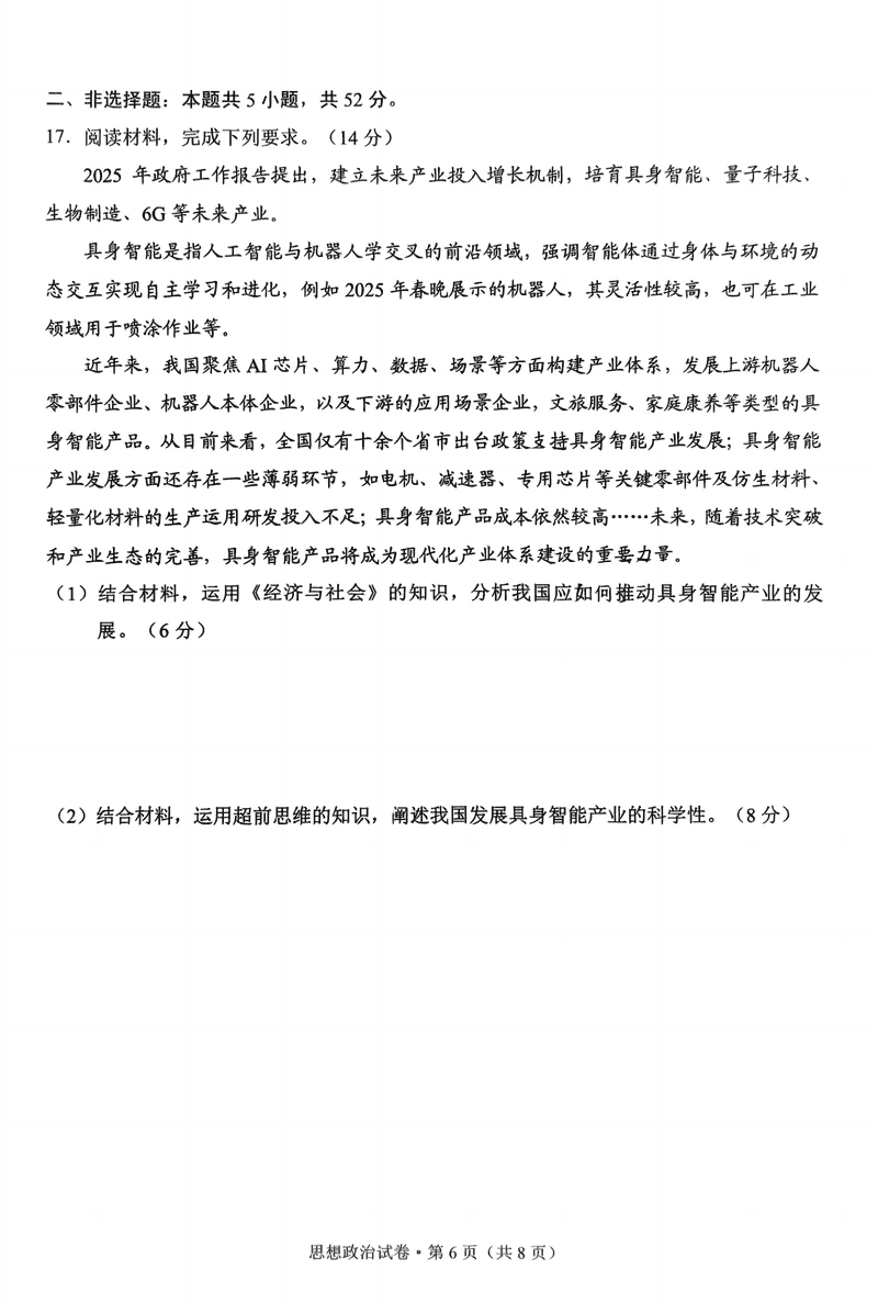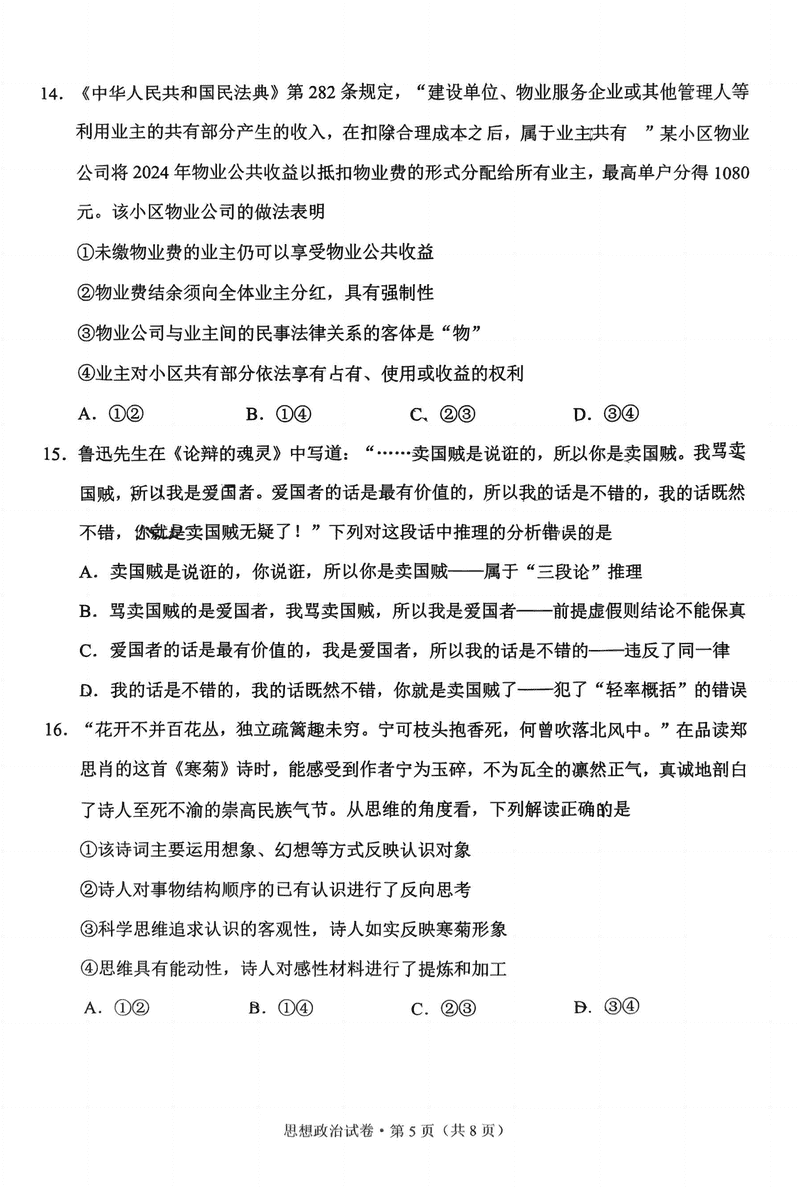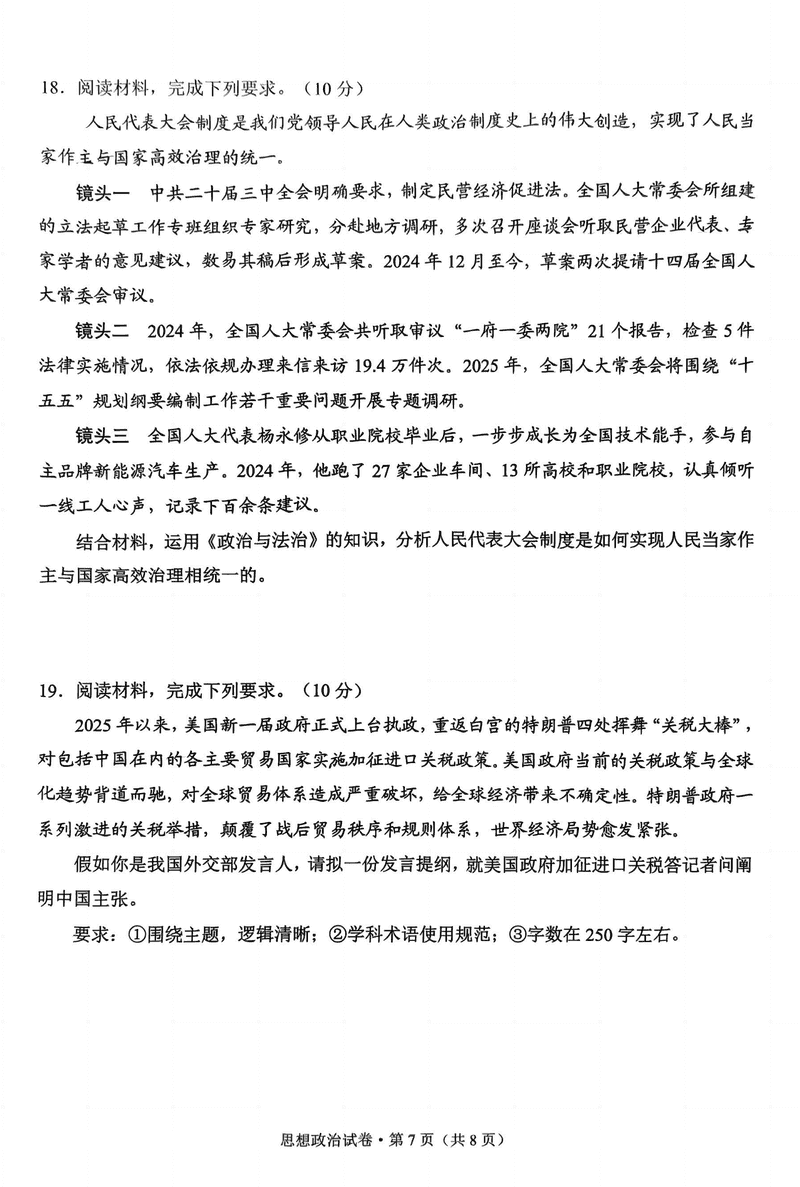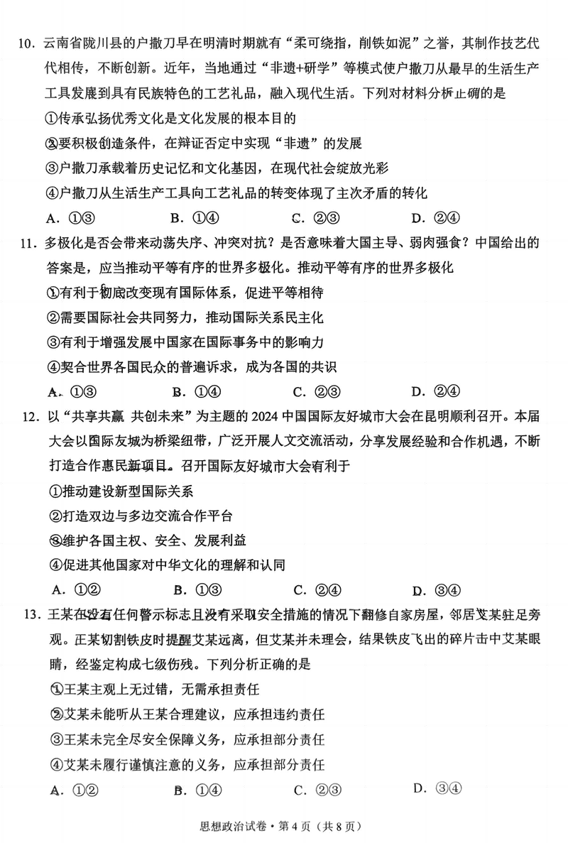 昆明市2025届“三诊一模”高三复习教学质检政治试题及答案