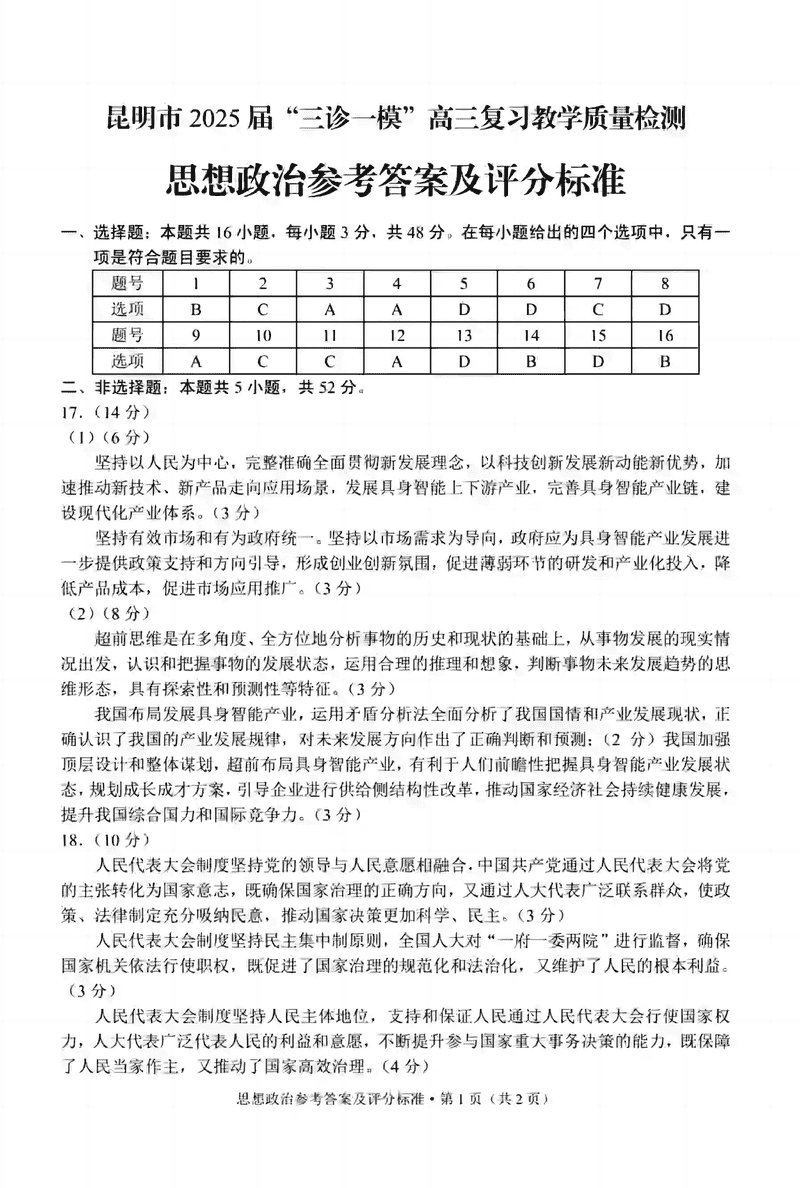 昆明市2025届“三诊一模”高三复习教学质检政治考试已于近日开考,为方便考生考后及时查看考试情况,查漏补缺、弥补不足,本文整理了试题答案解析相关信息!