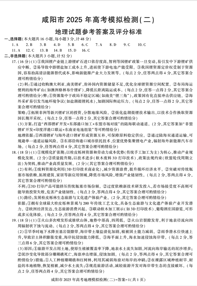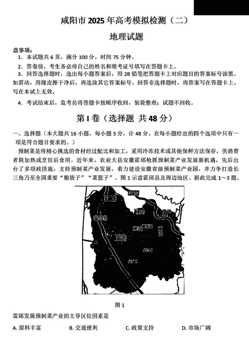咸阳市2025年高考模拟检测(二)地理试题及答案 时间:2025-03-31 陕西 文综试题 咸阳市2025年高考模拟检测(二)地理考试已于近日开考,为方便考生考后及时查看考试情况,查漏补缺、弥补不足,本文整理了试题答案解析相关信息! 汇总:陕西省咸阳市2025届高三第二次模拟试题及答案汇总 地理试题及答案解析