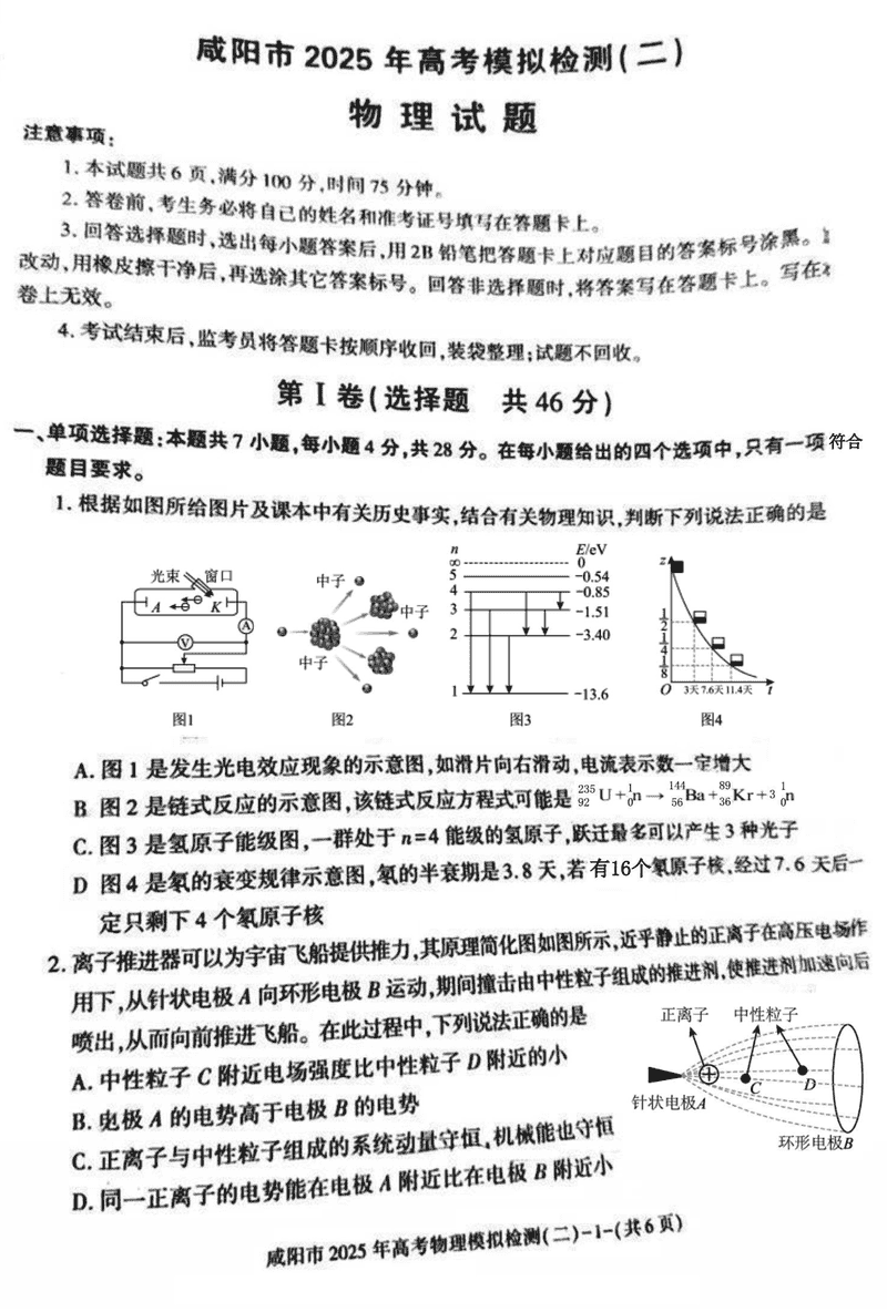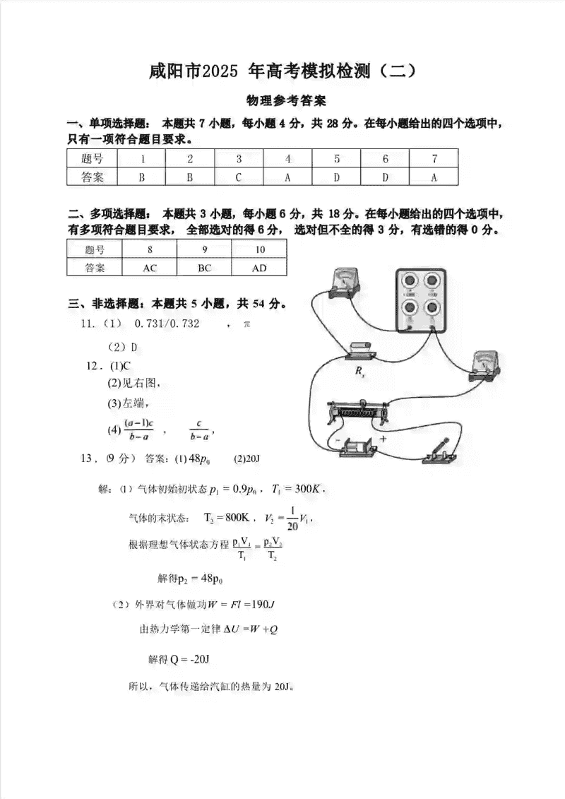 咸阳市2025年高考模拟检测(二)物理试题及答案 时间:2025-03-31 陕西 理综试题 咸阳市2025年高考模拟检测(二)物理考试已于近日开考,为方便考生考后及时查看考试情况,查漏补缺、弥补不足,本文整理了试题答案解析相关信息! 汇总:陕西省咸阳市2025届高三第二次模拟试题及答案汇总 物理试题及答案解析
