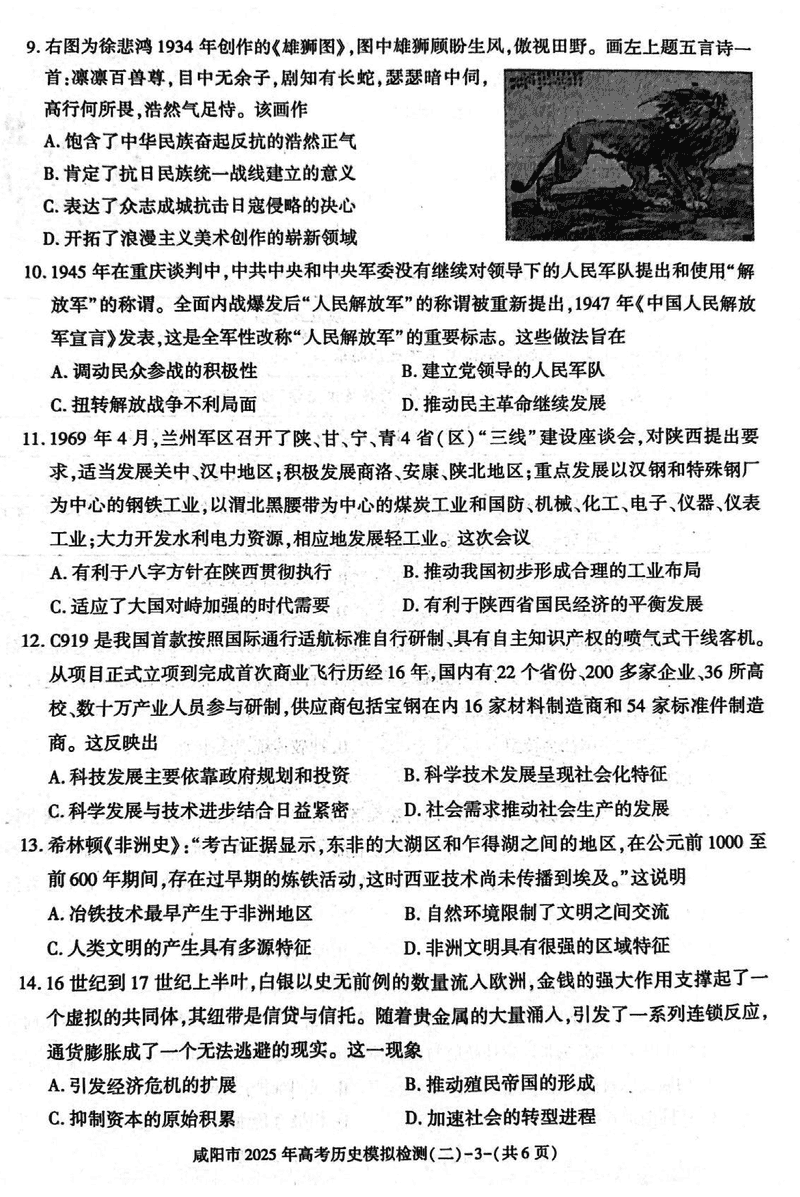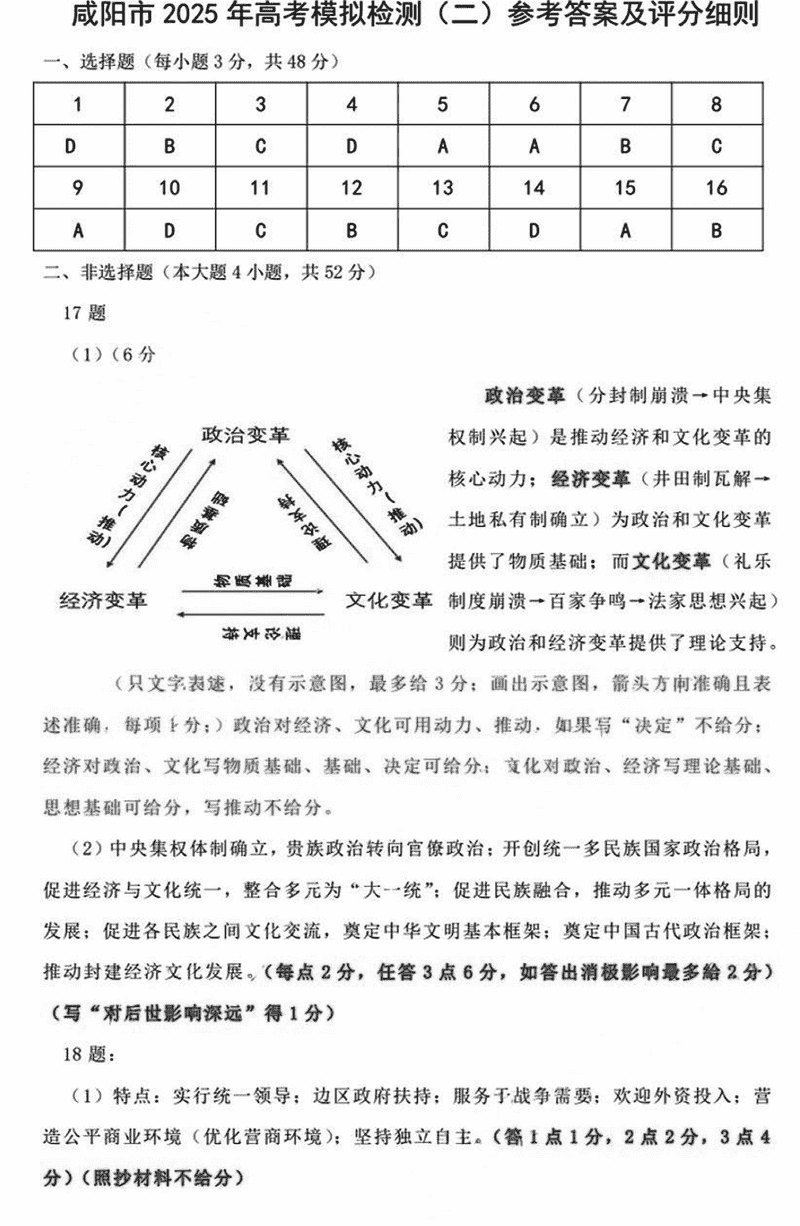 咸阳市2025年高考模拟检测(二)历史试题及答案 时间:2025-03-31 陕西 文综试题 咸阳市2025年高考模拟检测(二)历史考试已于近日开考,为方便考生考后及时查看考试情况,查漏补缺、弥补不足,本文整理了试题答案解析相关信息! 汇总:陕西省咸阳市2025届高三第二次模拟试题及答案汇总 历史试题及答案解析