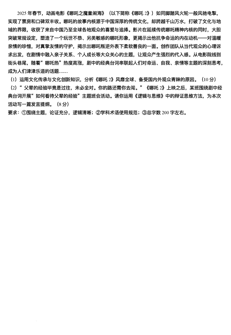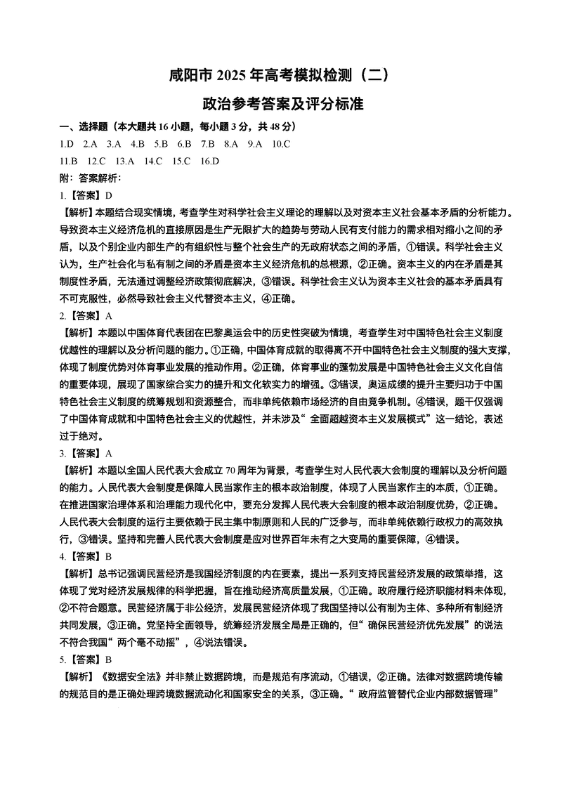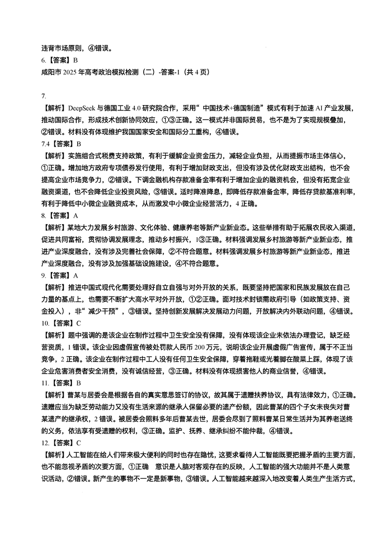 咸阳市2025年高考模拟检测(二)政治试题及答案 时间:2025-03-31 陕西 文综试题 咸阳市2025年高考模拟检测(二)政治考试已于近日开考,为方便考生考后及时查看考试情况,查漏补缺、弥补不足,本文整理了试题答案解析相关信息! 汇总:陕西省咸阳市2025届高三第二次模拟试题及答案汇总 政治试题及答案解析