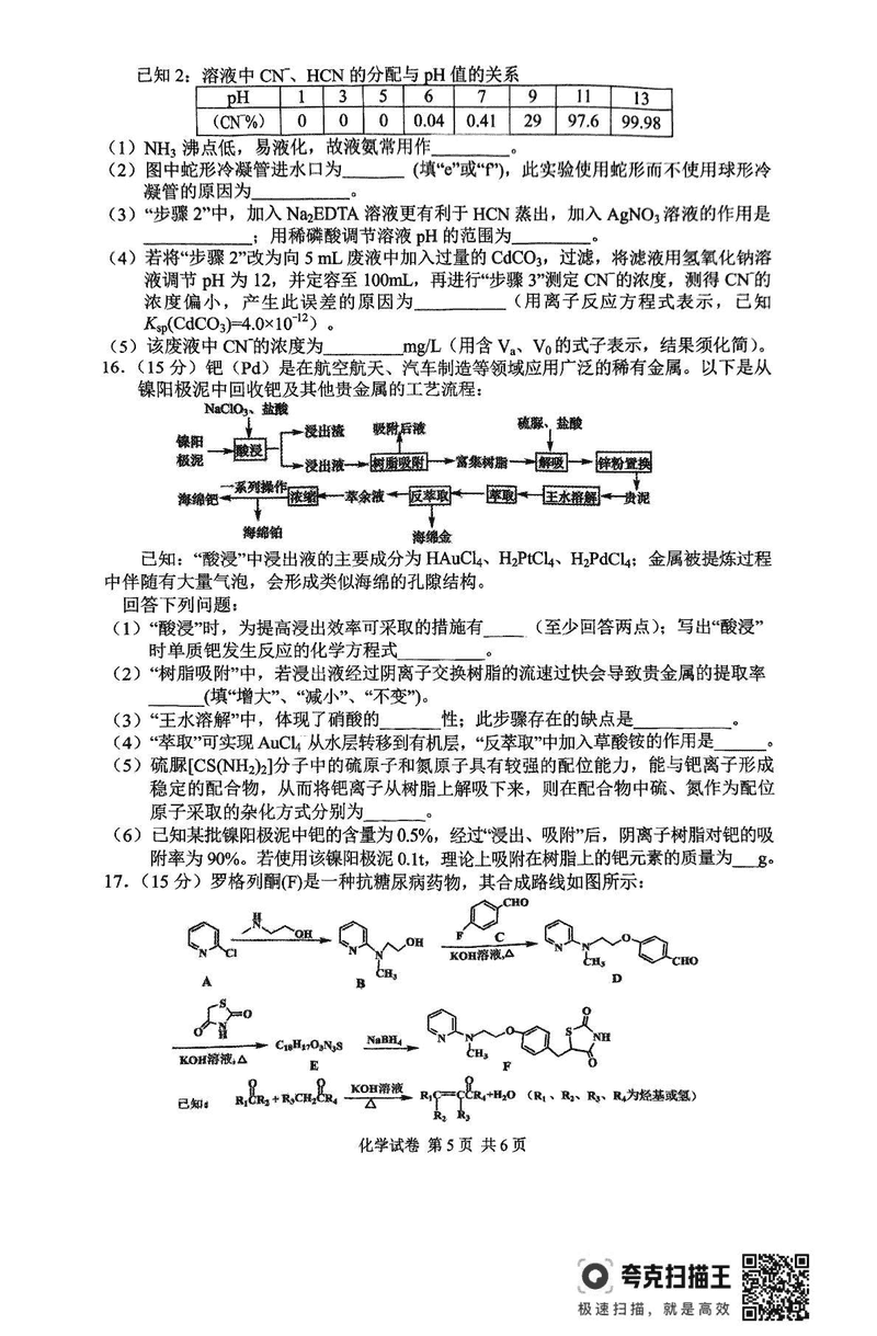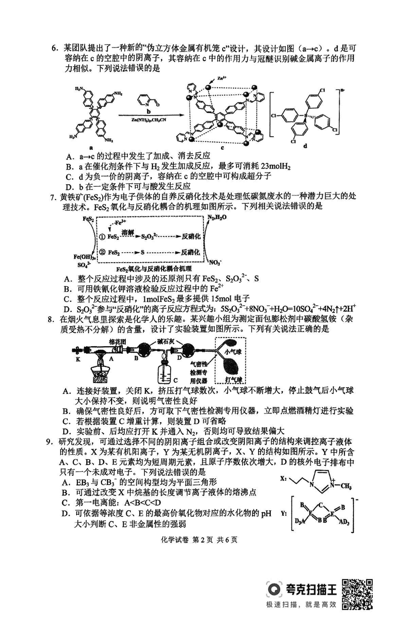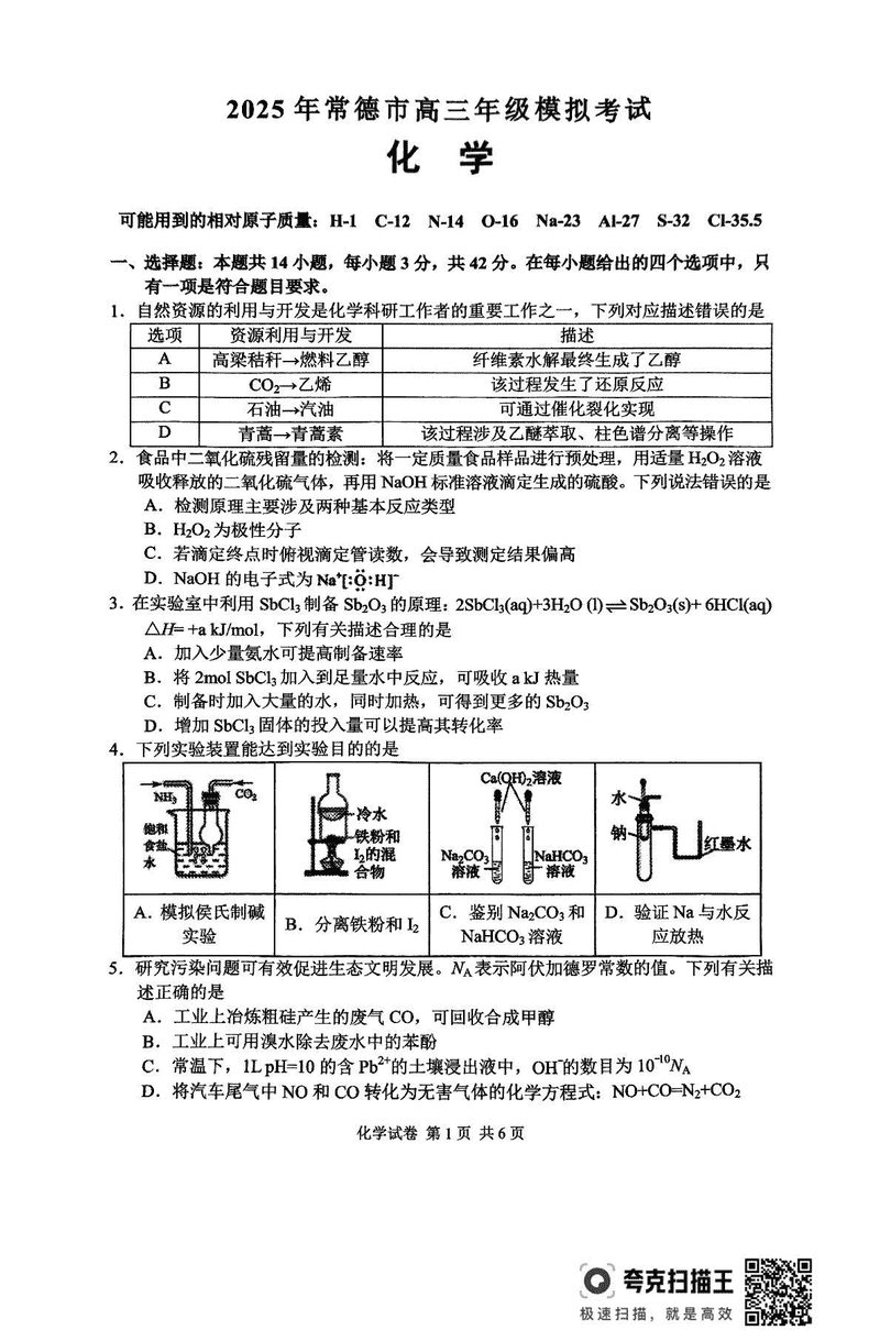 常德二模2025届高三下学期模考化学试题及答案 时间:2025-04-03 湖南 理综试题 常德二模2025届高三下学期模考化学考试已于近日开考,为方便考生考后及时查看考试情况,查漏补缺、弥补不足,本文整理了试题答案解析相关信息! 汇总:常德二模2025届高三下学期模拟考试试题及答案汇总 化学试题及答案解析