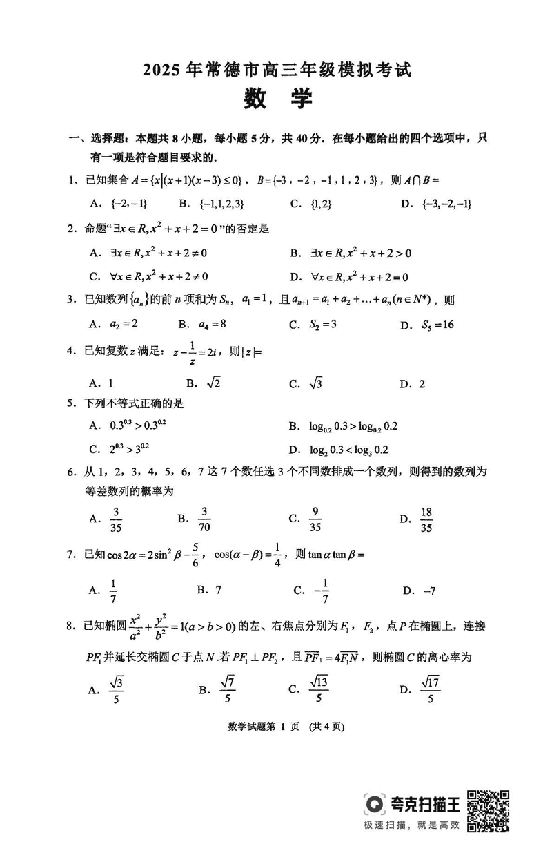常德二模2025届高三下学期模考数学试题及答案 时间:2025-04-03 湖南 数学试题 常德二模2025届高三下学期模考数学考试已于近日开考,为方便考生考后及时查看考试情况,查漏补缺、弥补不足,本文整理了试题答案解析相关信息! 汇总:常德二模2025届高三下学期模拟考试试题及答案汇总 数学试题及答案解析