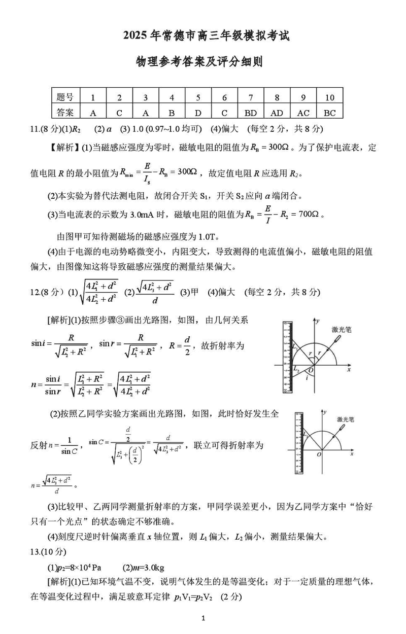 常德二模2025届高三下学期模考物理试题及答案 时间:2025-04-03 湖南 理综试题 常德二模2025届高三下学期模考物理考试已于近日开考,为方便考生考后及时查看考试情况,查漏补缺、弥补不足,本文整理了试题答案解析相关信息! 汇总:常德二模2025届高三下学期模拟考试试题及答案汇总 物理试题及答案解析