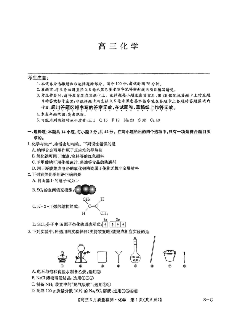 河南省九师联盟2025届高三4月联考化学试题及答案 时间:2025-04-03 河南 理综试题 河南省九师联盟2025届高三4月联考化学考试已于近日开考,为方便考生考后及时查看考试情况,查漏补缺、弥补不足,本文整理了试题答案解析相关信息! 汇总:河南省九师联盟2025届高三4月联考试题及答案汇总 化学试题及答案解析