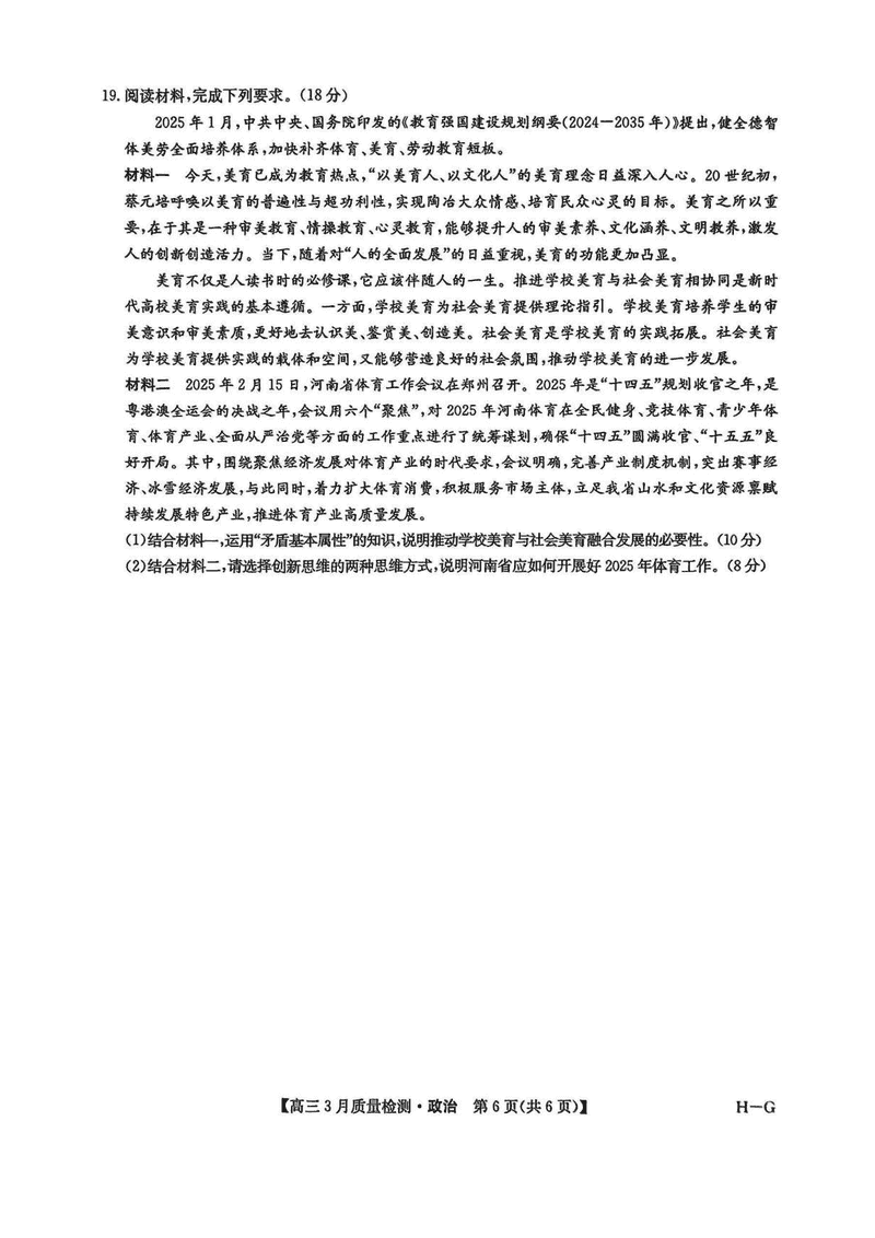 河南省九师联盟2025届高三4月联考政治试题及答案 时间:2025-04-03 河南 文综试题 河南省九师联盟2025届高三4月联考政治考试已于近日开考,为方便考生考后及时查看考试情况,查漏补缺、弥补不足,本文整理了试题答案解析相关信息! 汇总:河南省九师联盟2025届高三4月联考试题及答案汇总 政治试题及答案解析