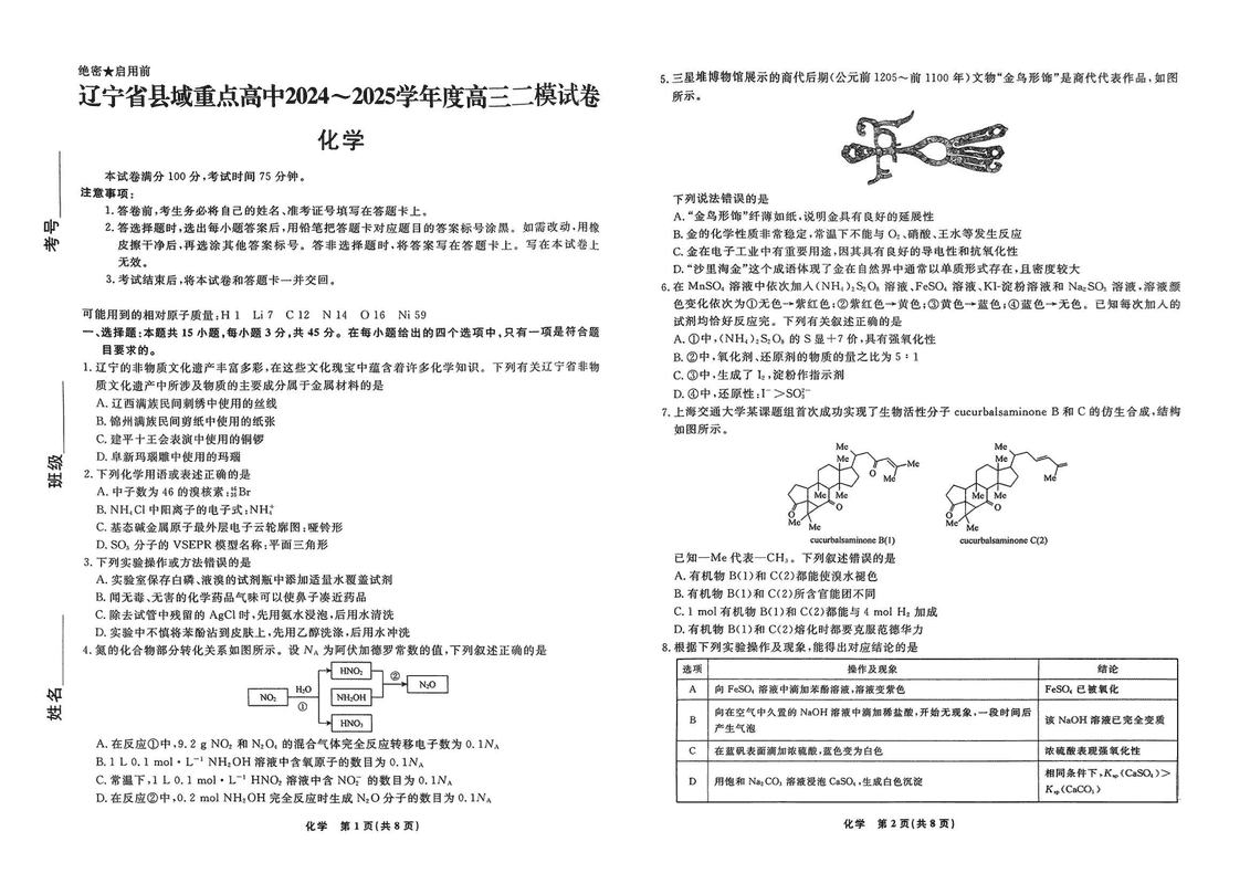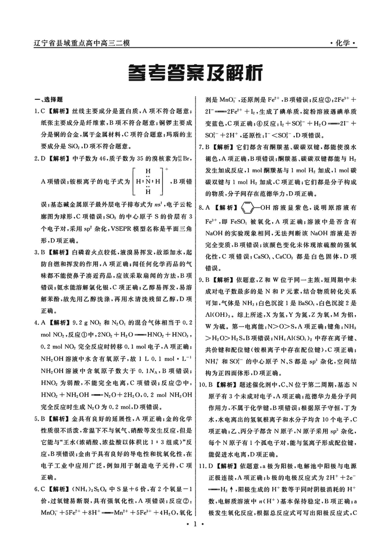 辽宁省县域重点高中2025年高三二模化学考试已于近日开考,为方便考生考后及时查看考试情况,查漏补缺、弥补不足,本文整理了试题答案解析相关信息!