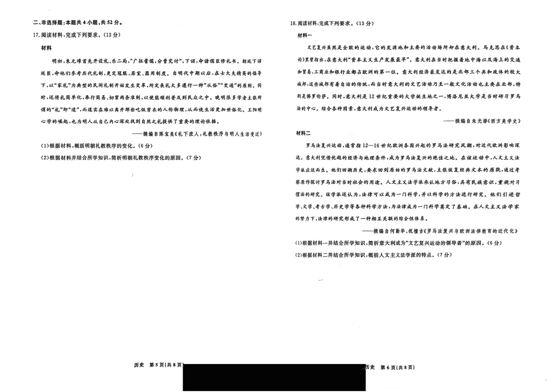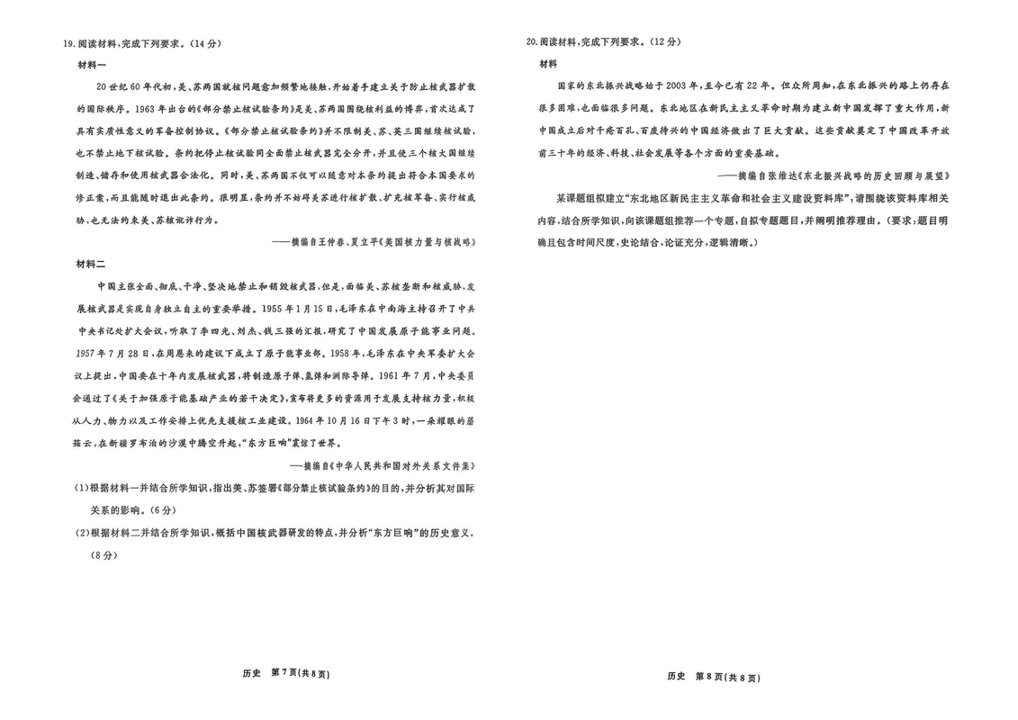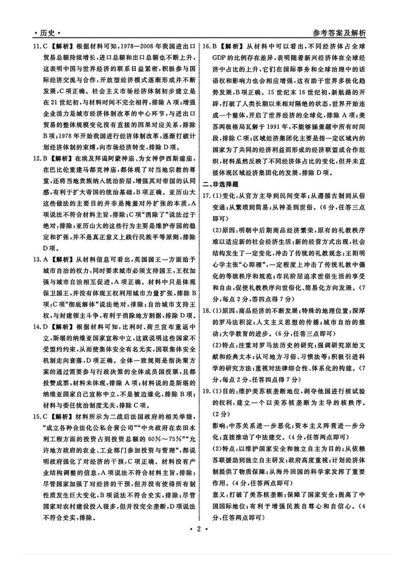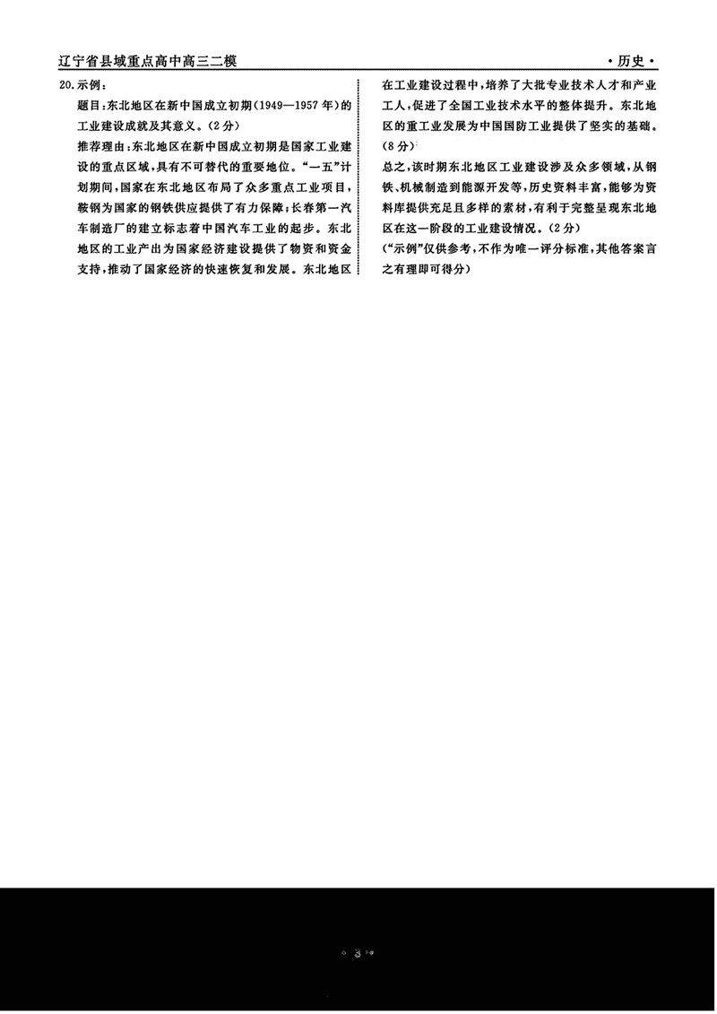辽宁省县域重点高中2025年高三二模历史试题及答案