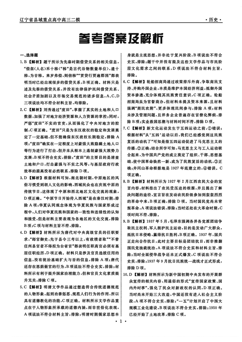 辽宁省县域重点高中2025年高三二模历史考试已于近日开考,为方便考生考后及时查看考试情况,查漏补缺、弥补不足,本文整理了试题答案解析相关信息!
