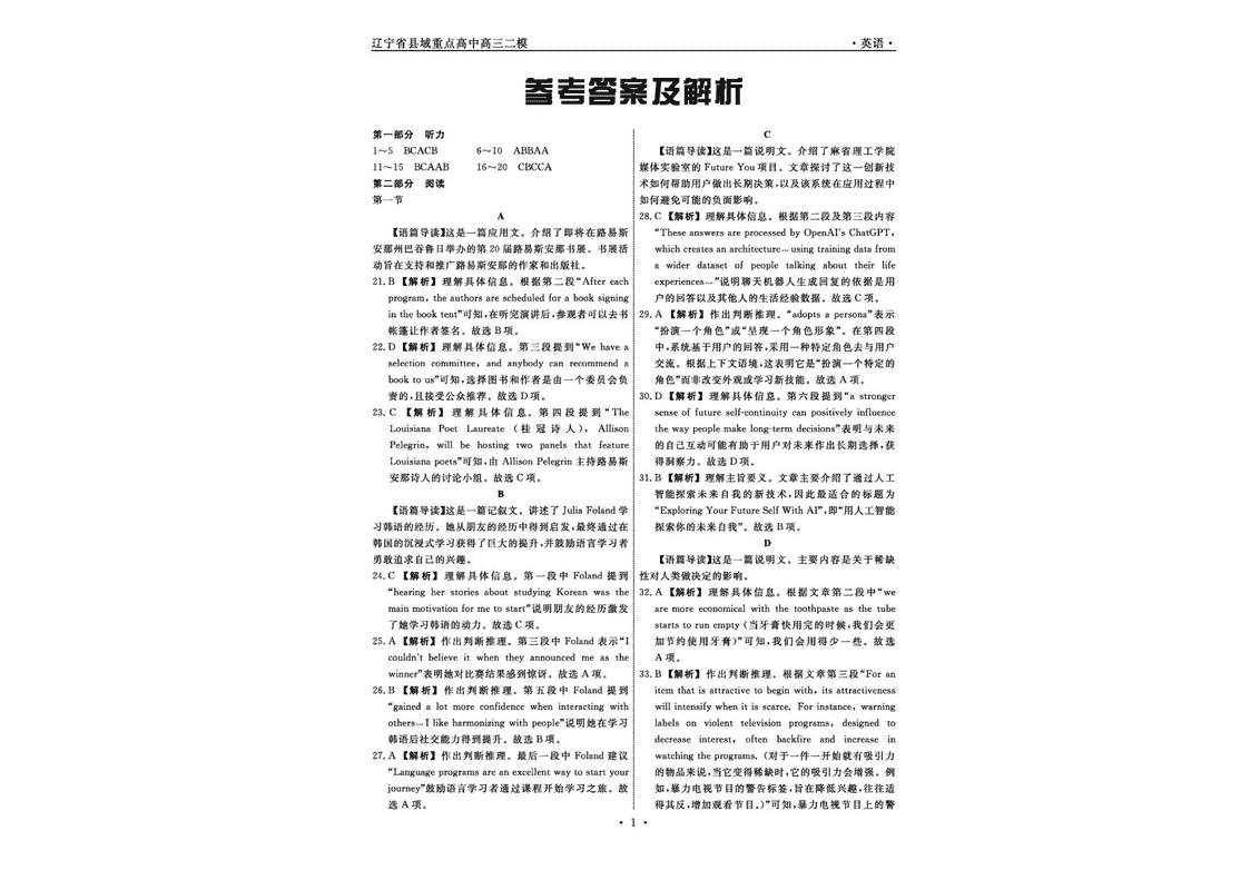 辽宁省县域重点高中2025年高三二模英语考试已于近日开考,为方便考生考后及时查看考试情况,查漏补缺、弥补不足,本文整理了试题答案解析相关信息!