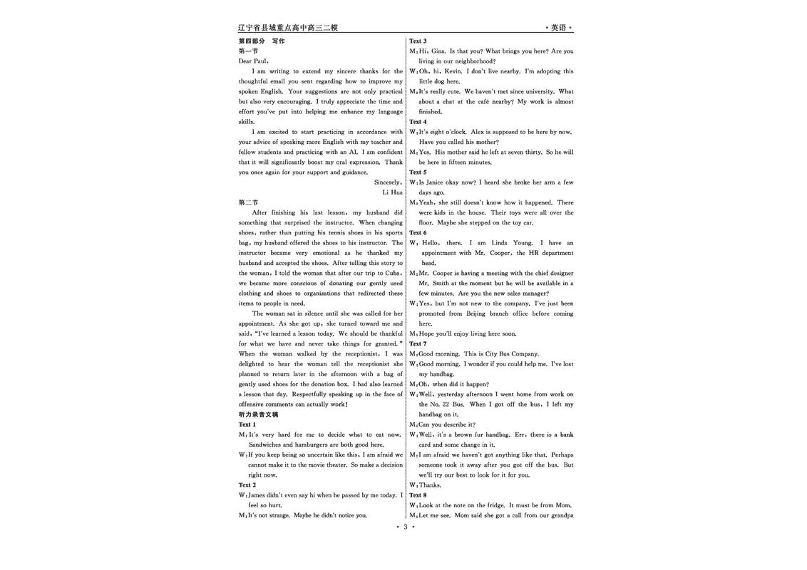 辽宁省县域重点高中2025年高三二模英语试题及答案