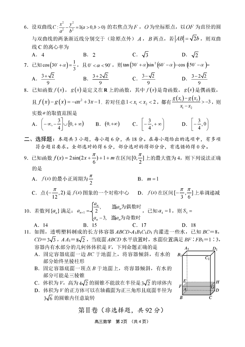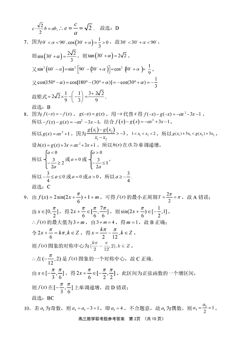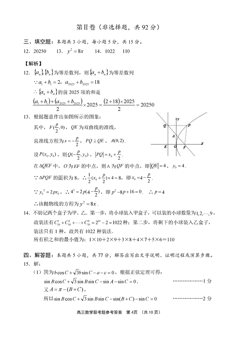 2025届海南中学等四校高三下学期模拟联考数学试题及答案