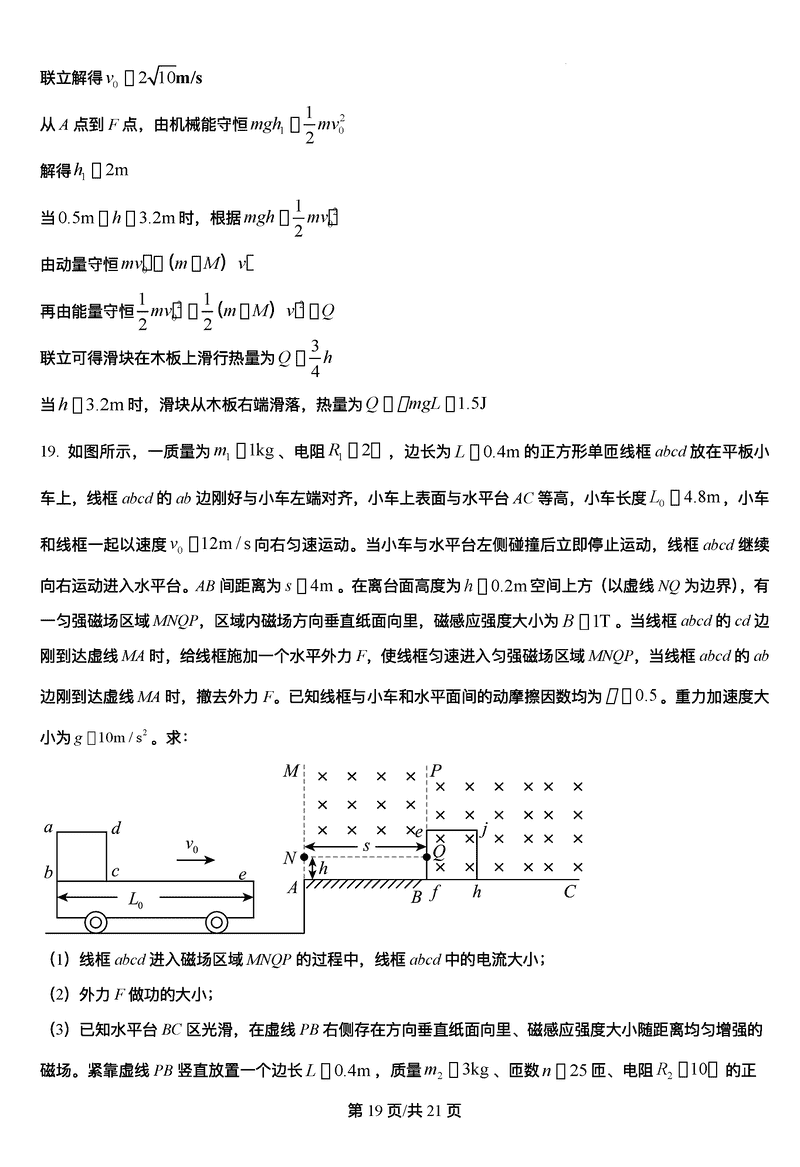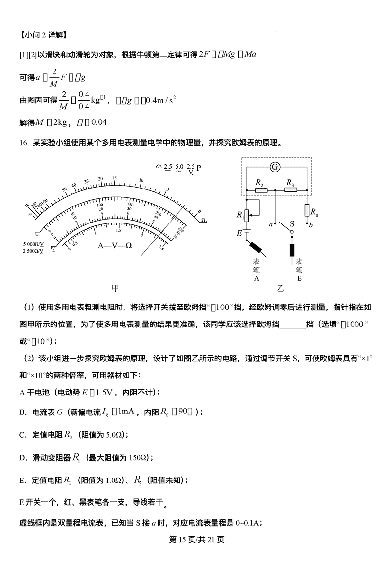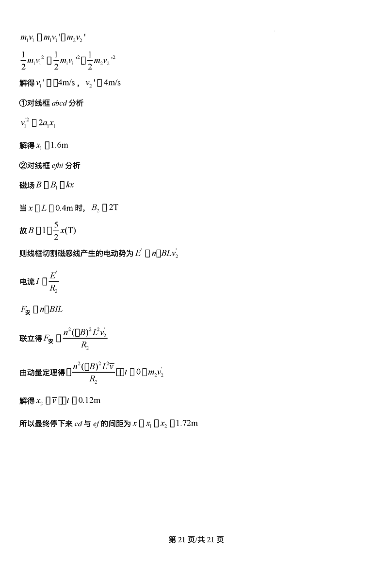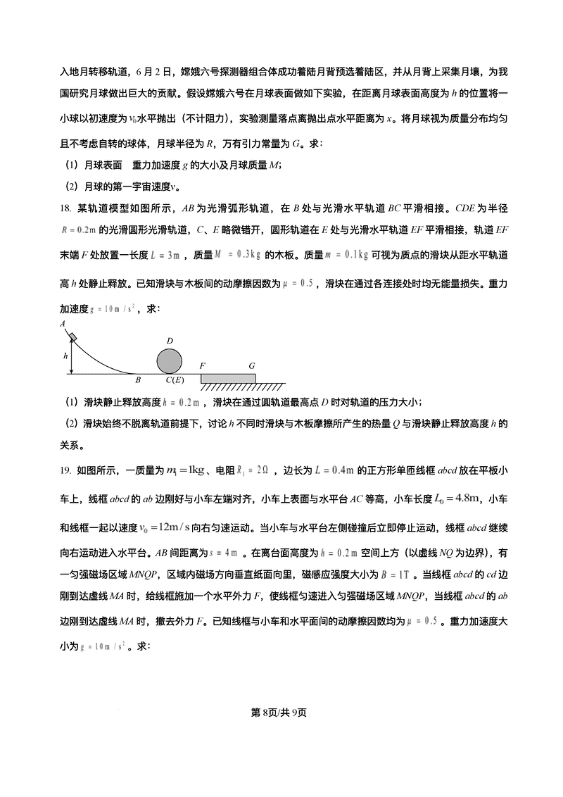 2025届海南中学等四校高三下学期模拟联考物理试题及答案