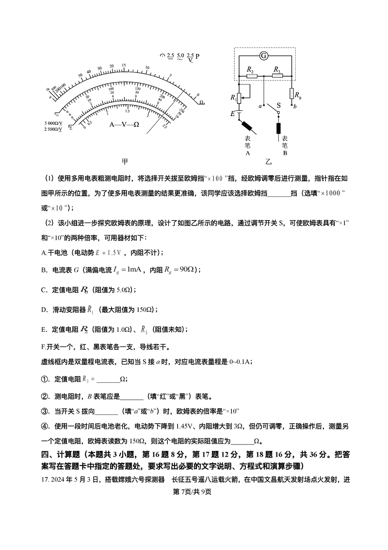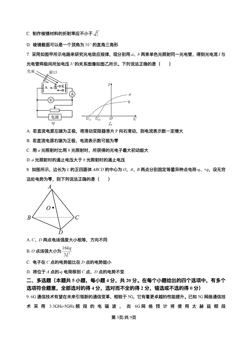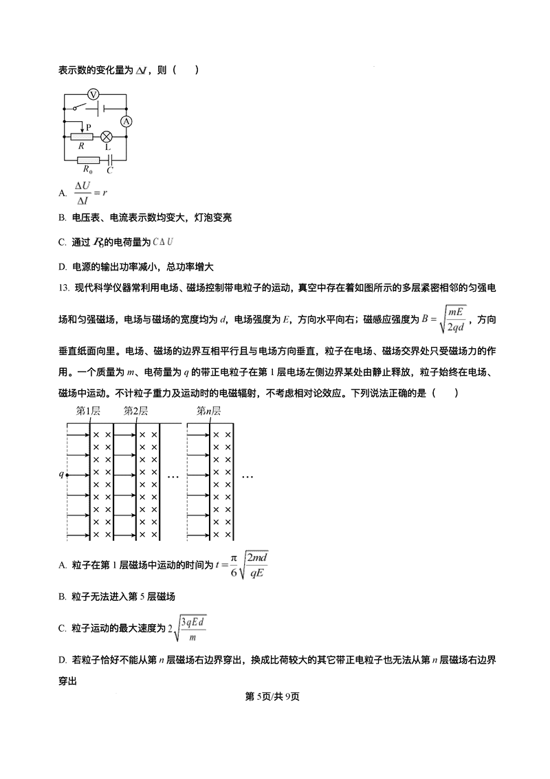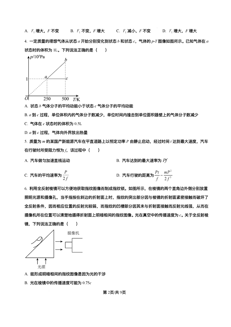 2025届海南中学等四校高三下学期模拟联考物理试题及答案