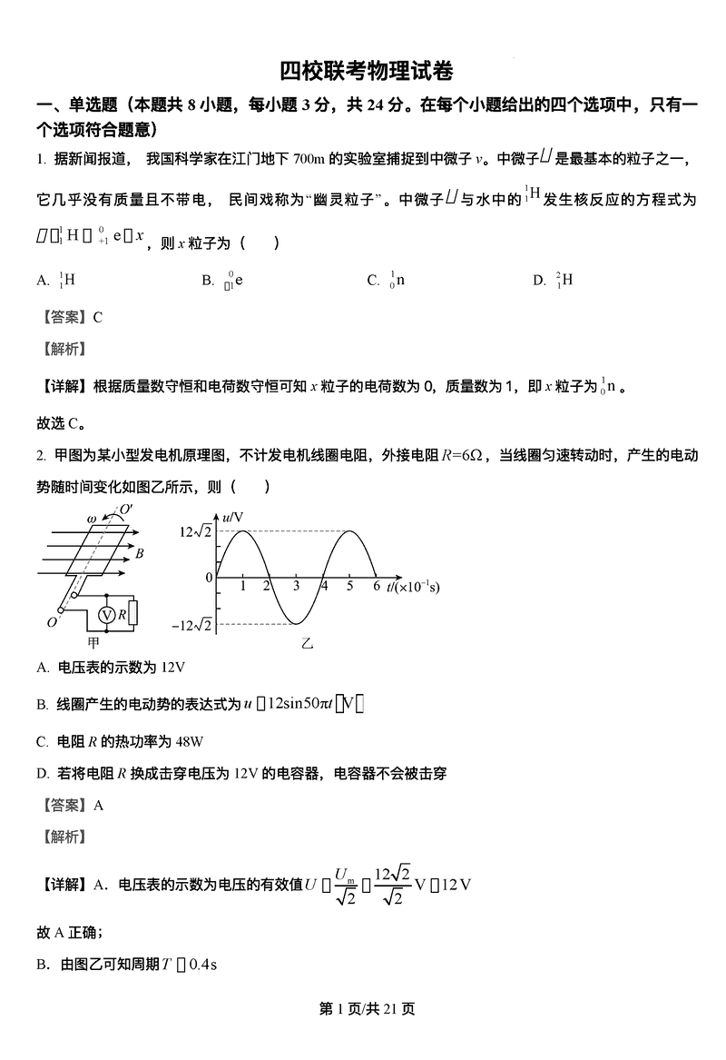2025届海南中学、海口一中、文昌中学、嘉积中学四校高三下学期模拟联考物理考试已于近日开考,为方便考生考后及时查看考试情况,查漏补缺、弥补不足,本文整理了试题答案解析相关信息!