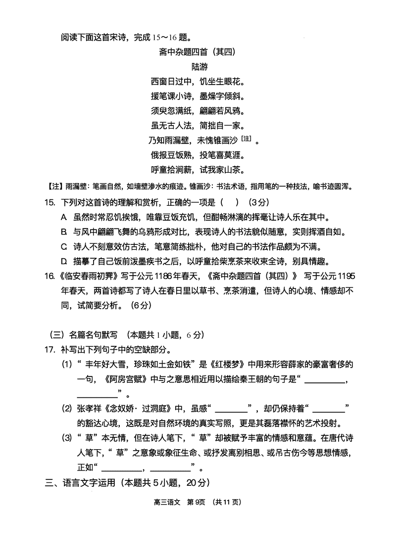 2025届海南中学等四校高三下学期模拟联考语文试题及答案