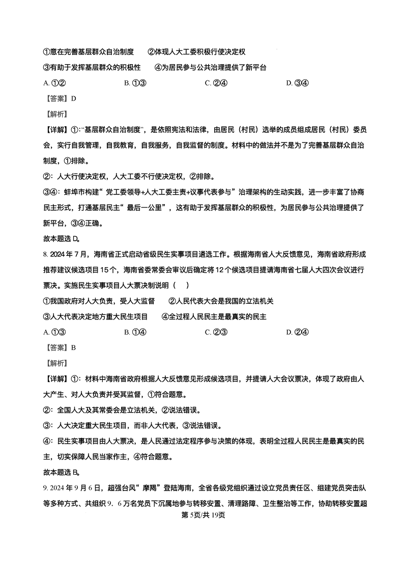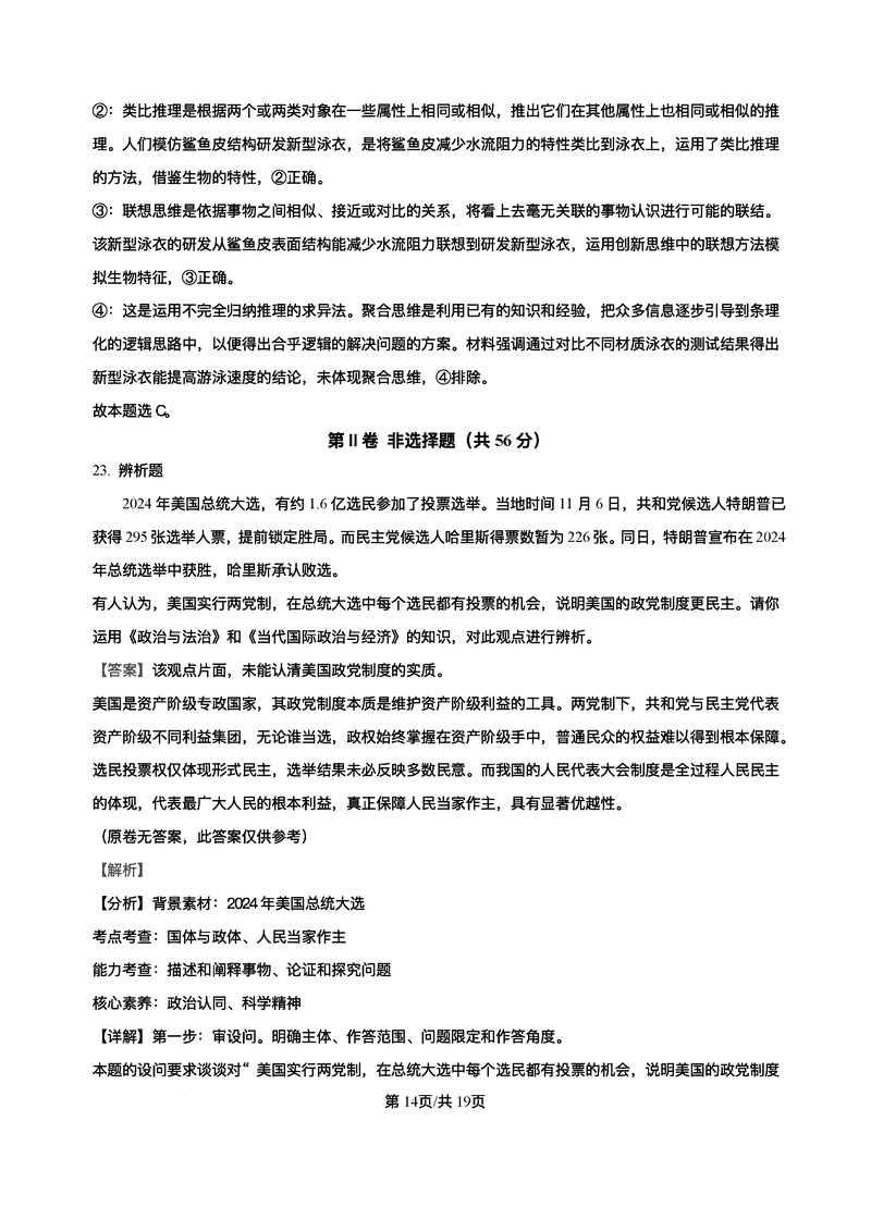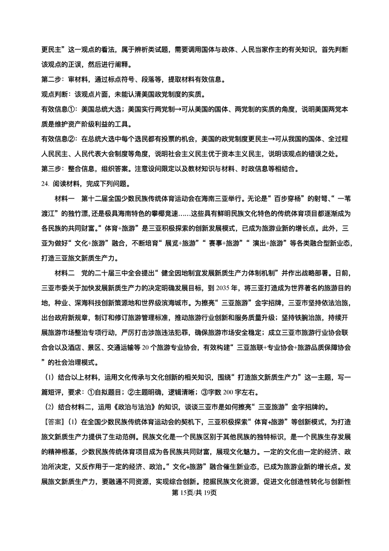 政治试题及答案解析