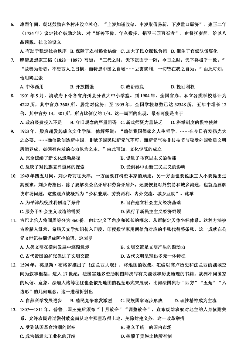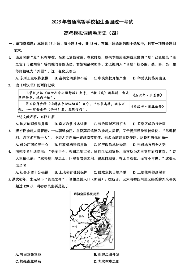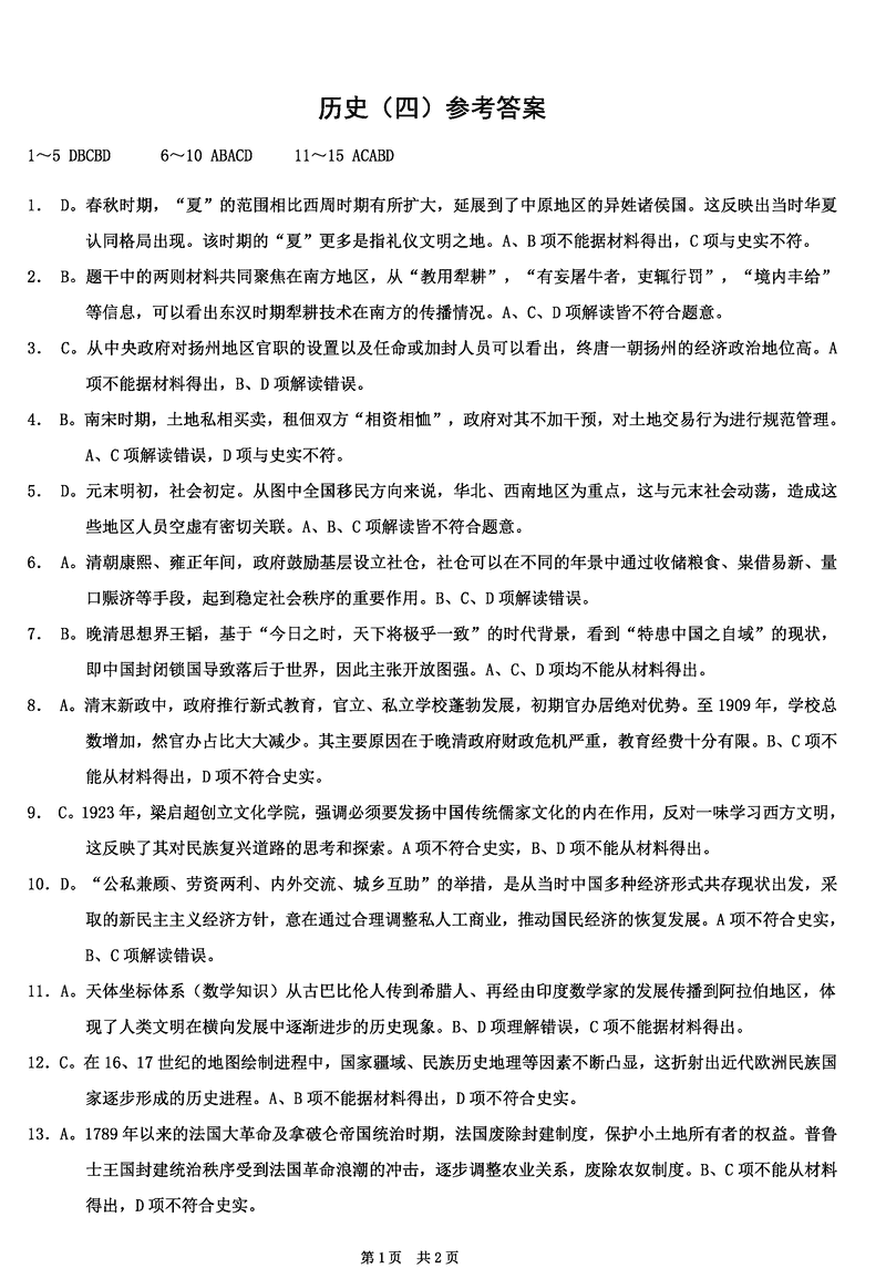 重庆康德卷2025年高考模拟调研(四)历史试题及答案 时间:2025-04-03 重庆 文综试题 重庆康德卷2025年高考模拟调研(四)历史考试已于近日开考,为方便考生考后及时查看考试情况,查漏补缺、弥补不足,本文整理了试题答案解析相关信息! 汇总:重庆康德卷2025年高考模拟调研(四)试题及答案汇总 历史试题及答案解析