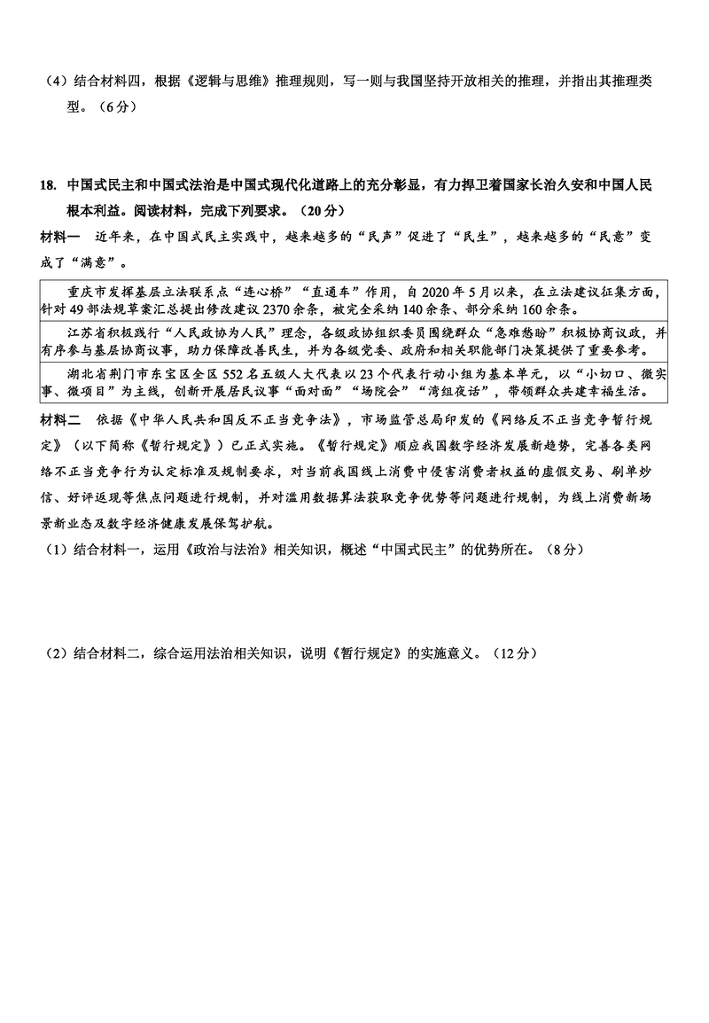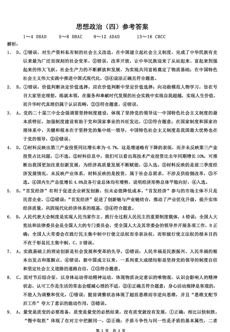 重庆康德卷2025年高考模拟调研(四)政治试题及答案 时间:2025-04-03 重庆 文综试题 重庆康德卷2025年高考模拟调研(四)政治考试已于近日开考,为方便考生考后及时查看考试情况,查漏补缺、弥补不足,本文整理了试题答案解析相关信息! 汇总:重庆康德卷2025年高考模拟调研(四)试题及答案汇总 政治试题及答案解析