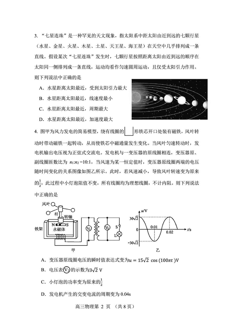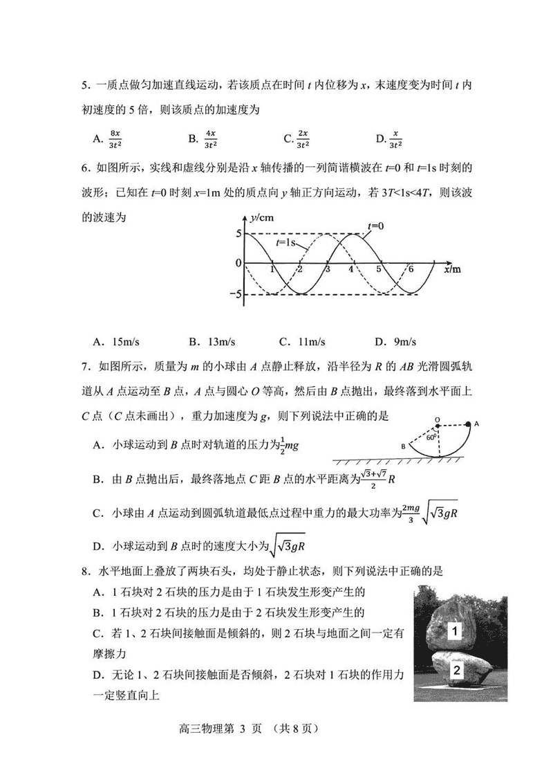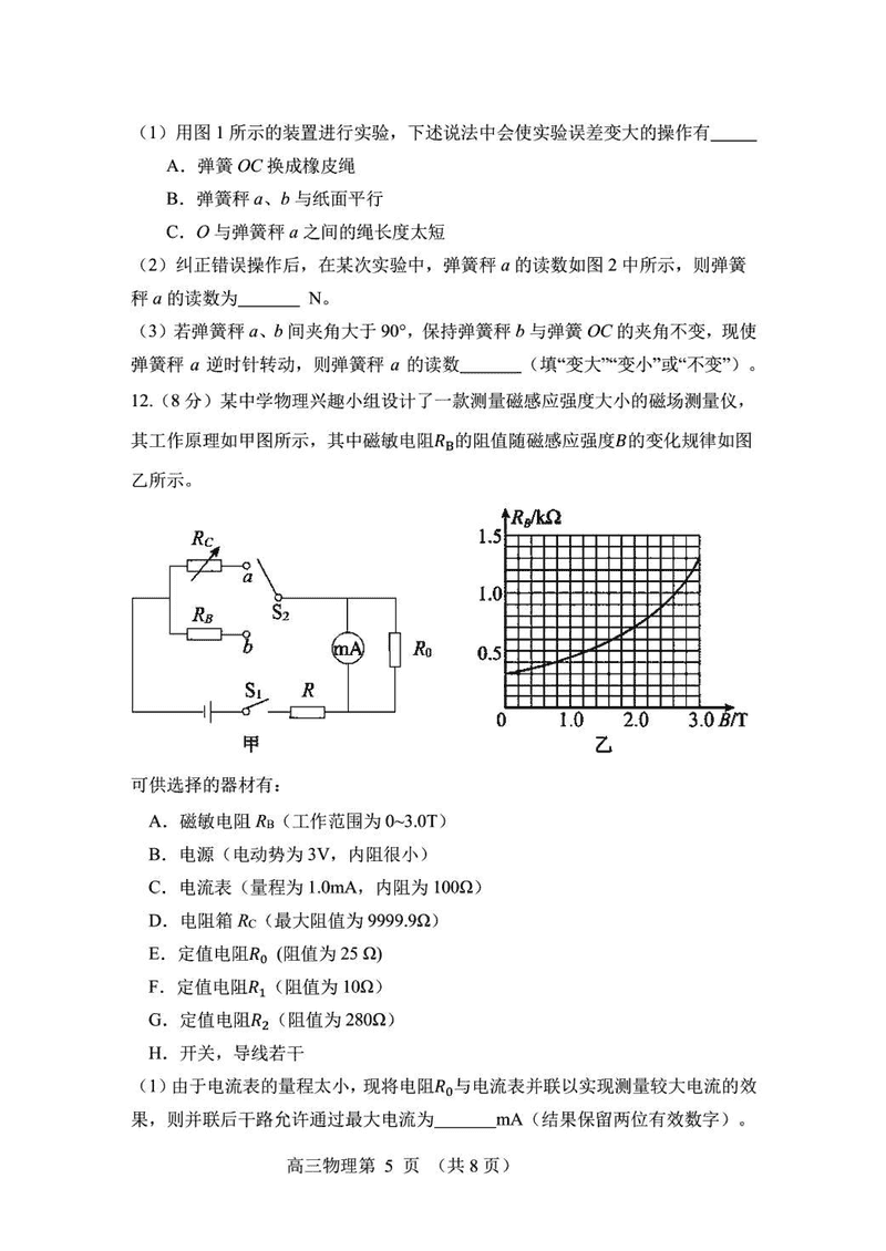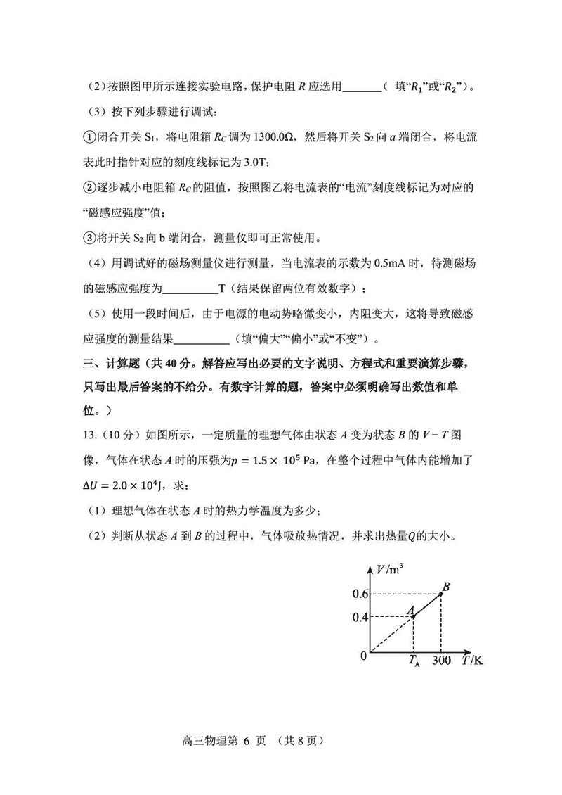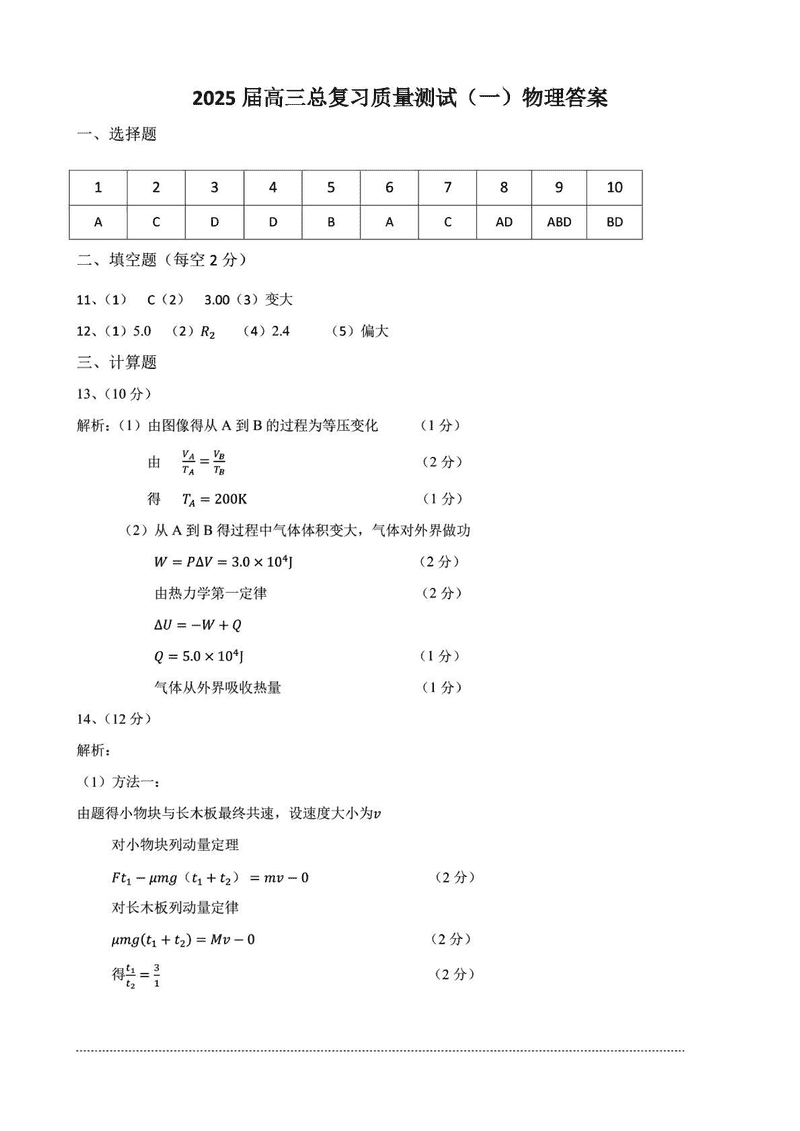 丹东市2025届高三下学期3月总复习质量测试(一)物理试题及答案