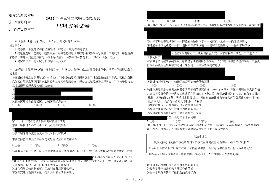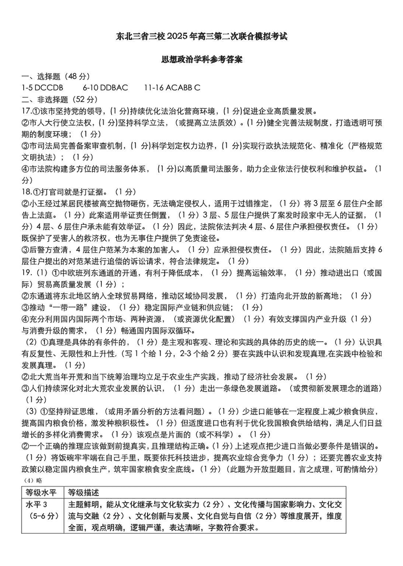 东北三省三校2025届高三二模政治考试已于近日开考,为方便考生考后及时查看考试情况,查漏补缺、弥补不足,本文整理了试题答案解析相关信息!