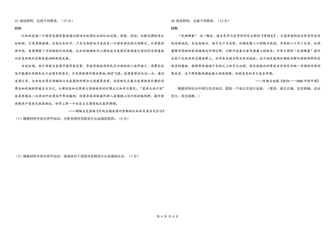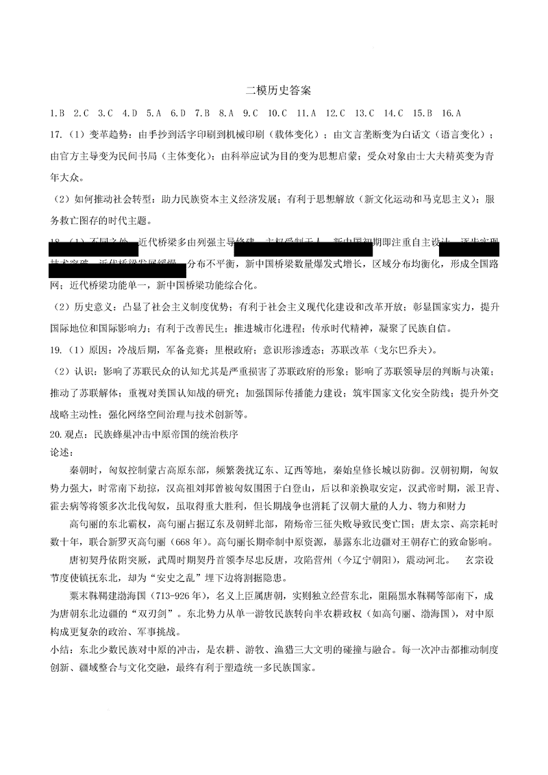 哈九中2025届高三下学期第二次模考历史试题及答案