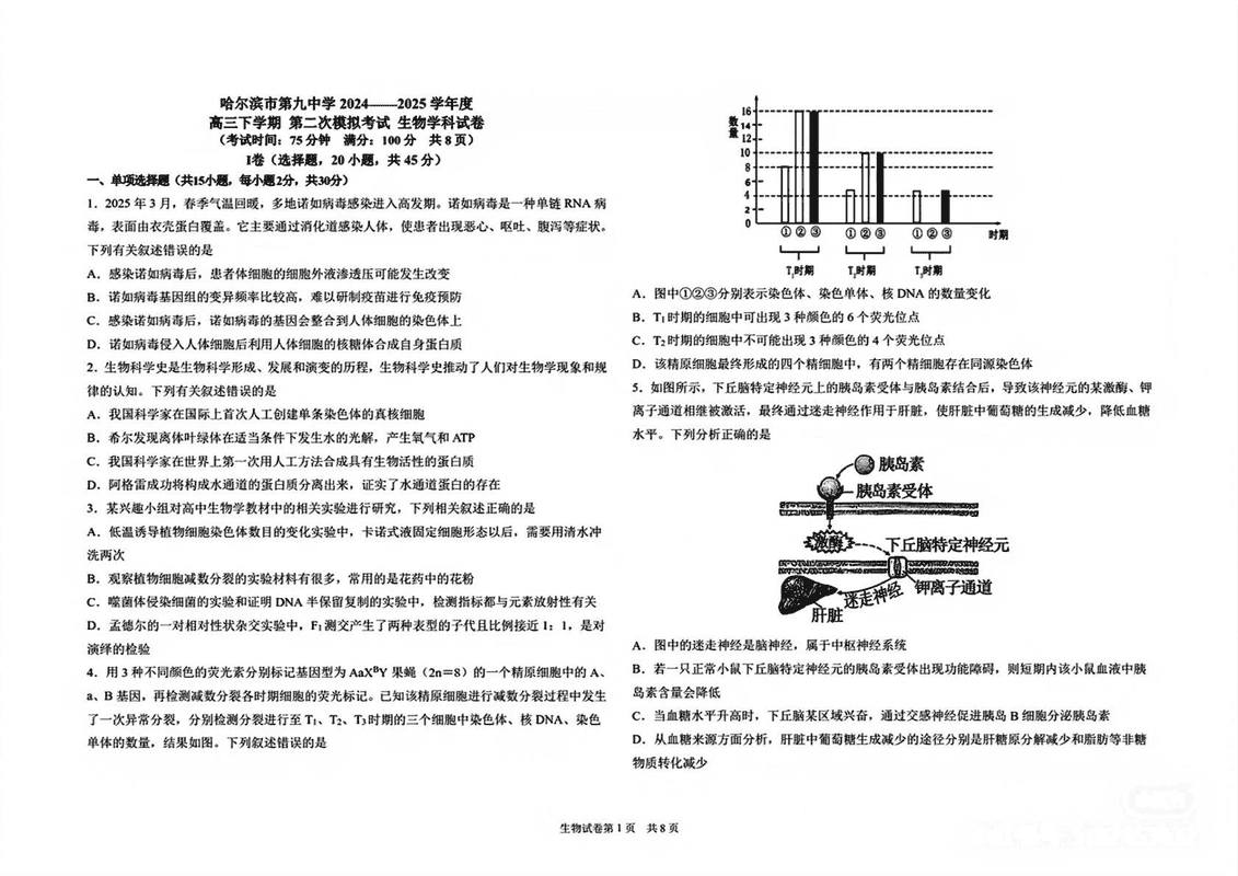哈九中2025届高三下学期第二次模考生物试题及答案