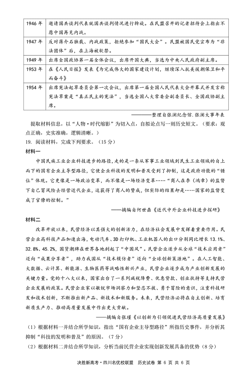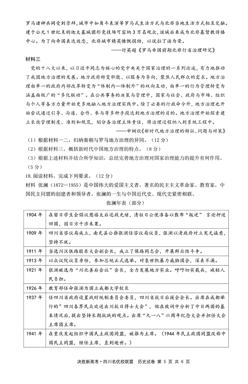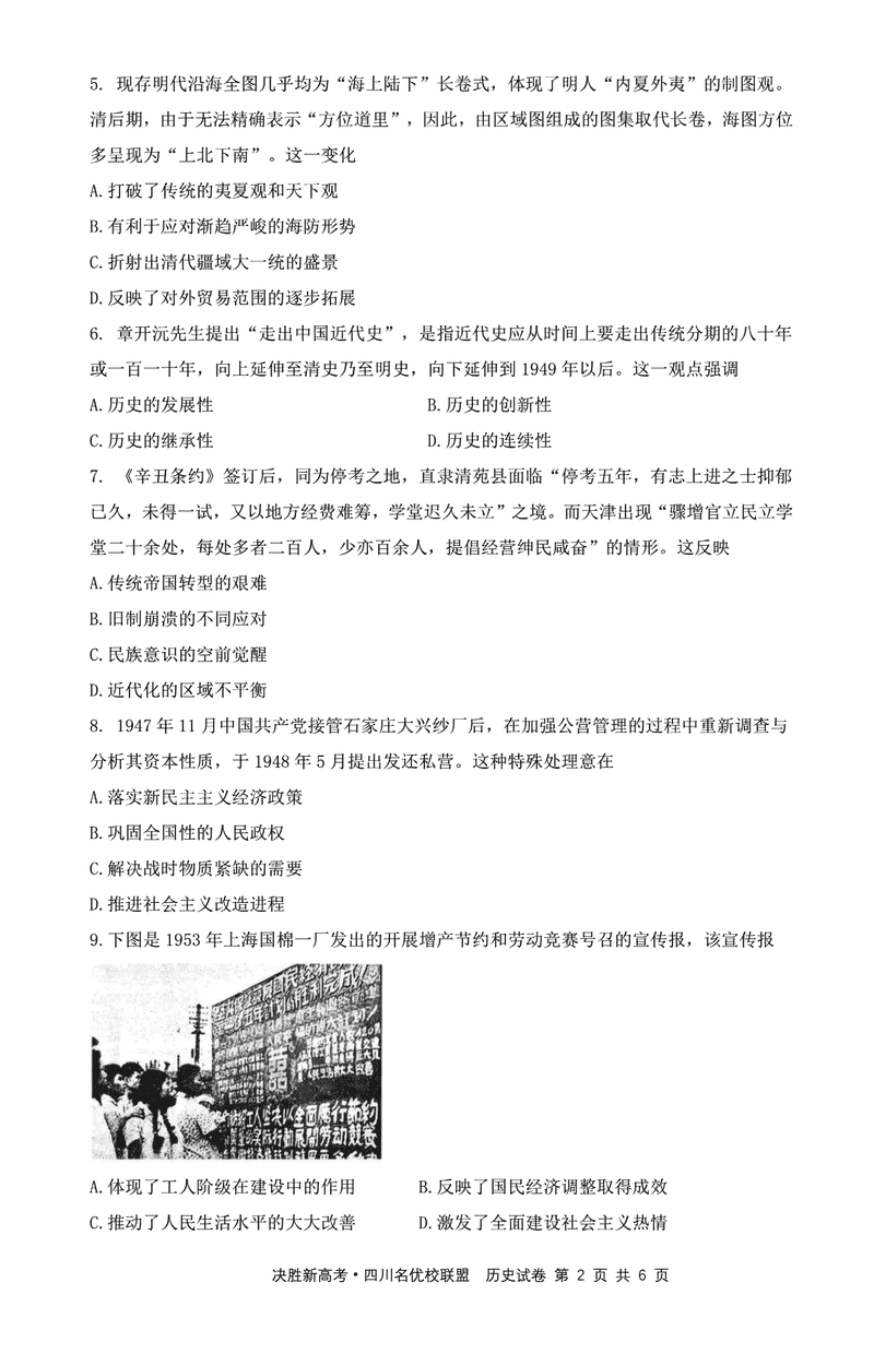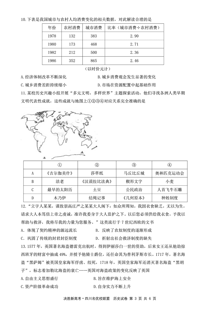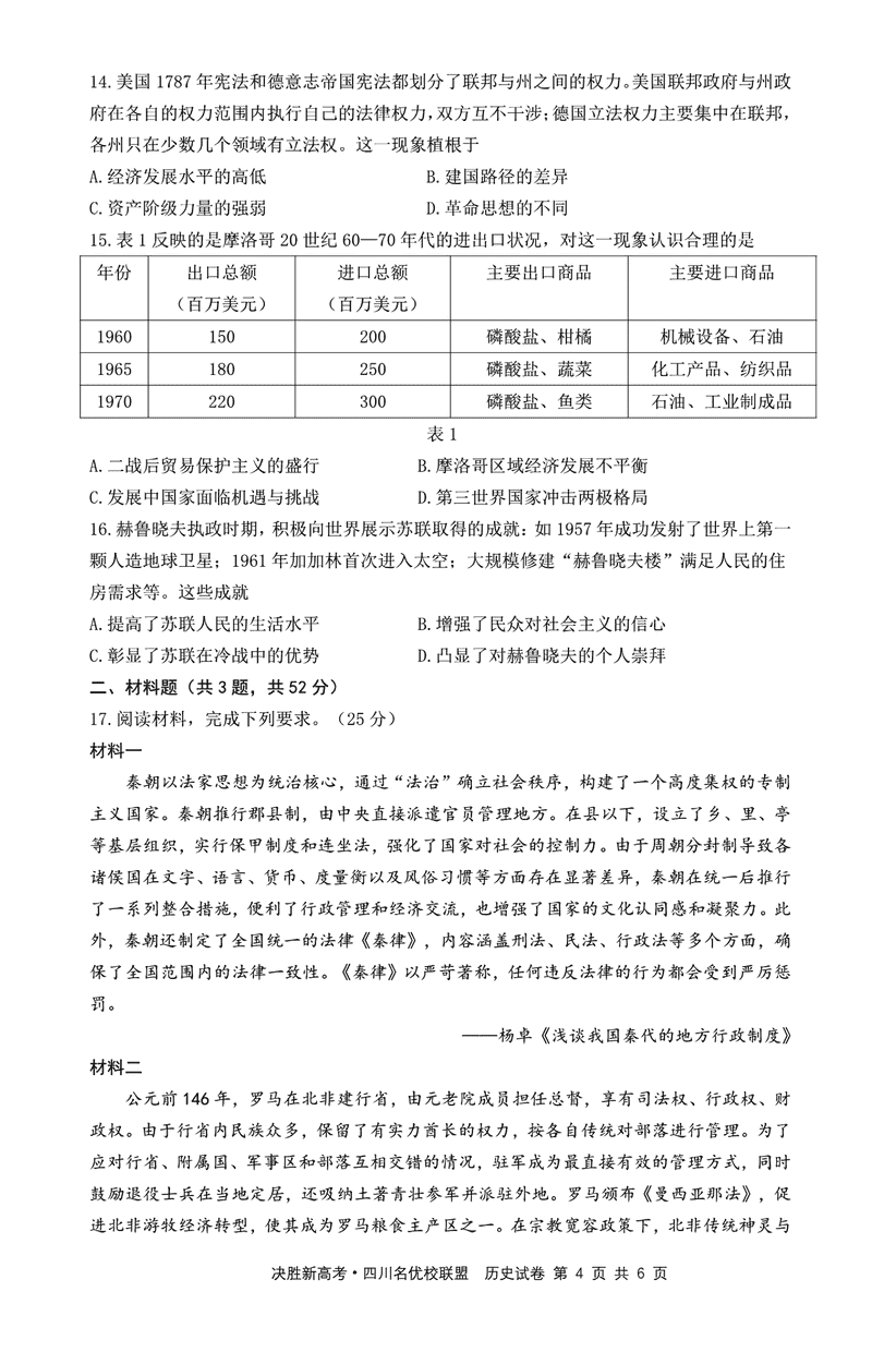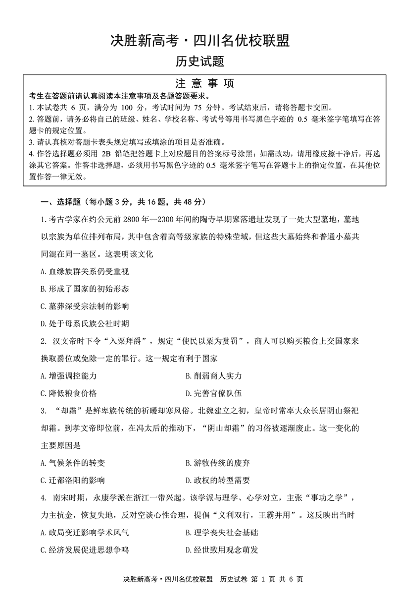 决胜新高考·四川名优校联盟2025届高三4月联考历史试题及答案
