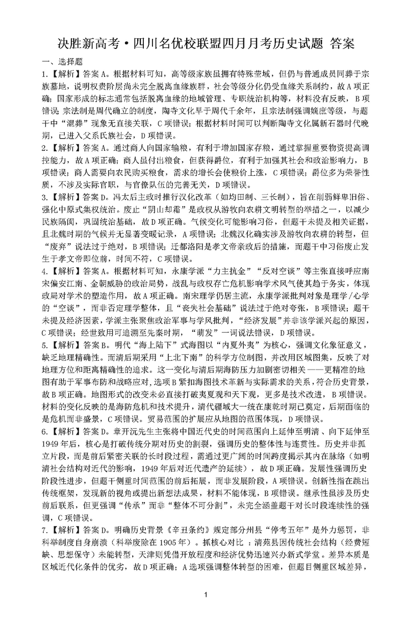 决胜新高考·四川名优校联盟2025届高三4月联考历史考试已于近日开考,为方便考生考后及时查看考试情况,查漏补缺、弥补不足,本文整理了试题答案解析相关信息!