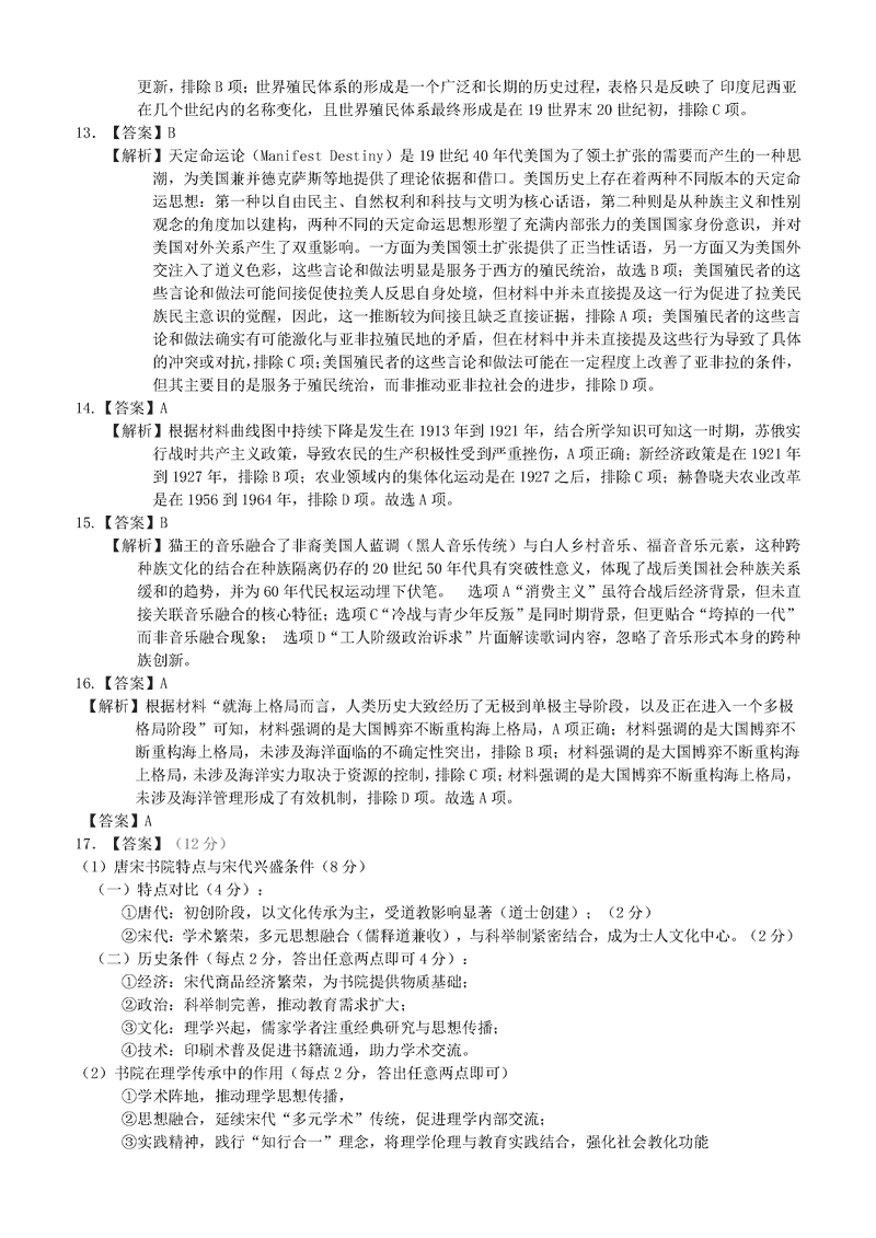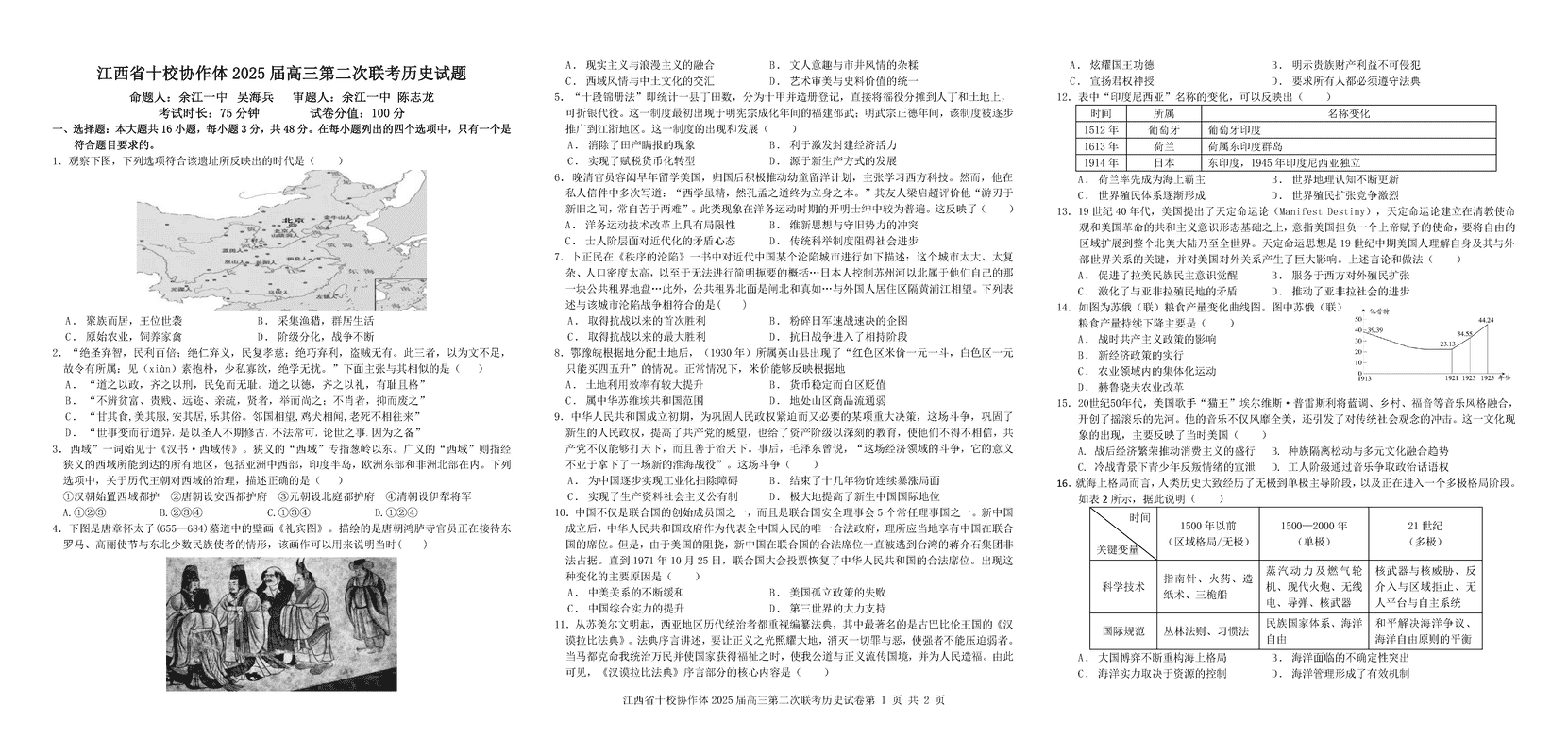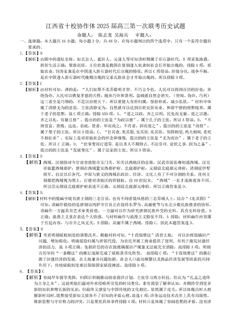 江西省十校协作体2025届高三第二次联考历史试题及答案