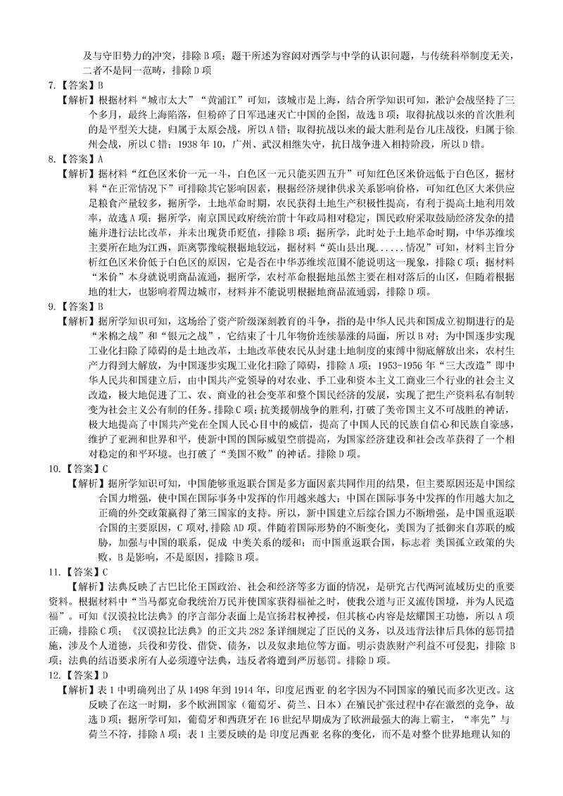 历史试题及答案解析