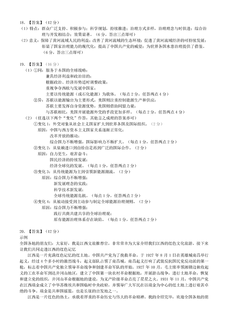 江西 文综试题