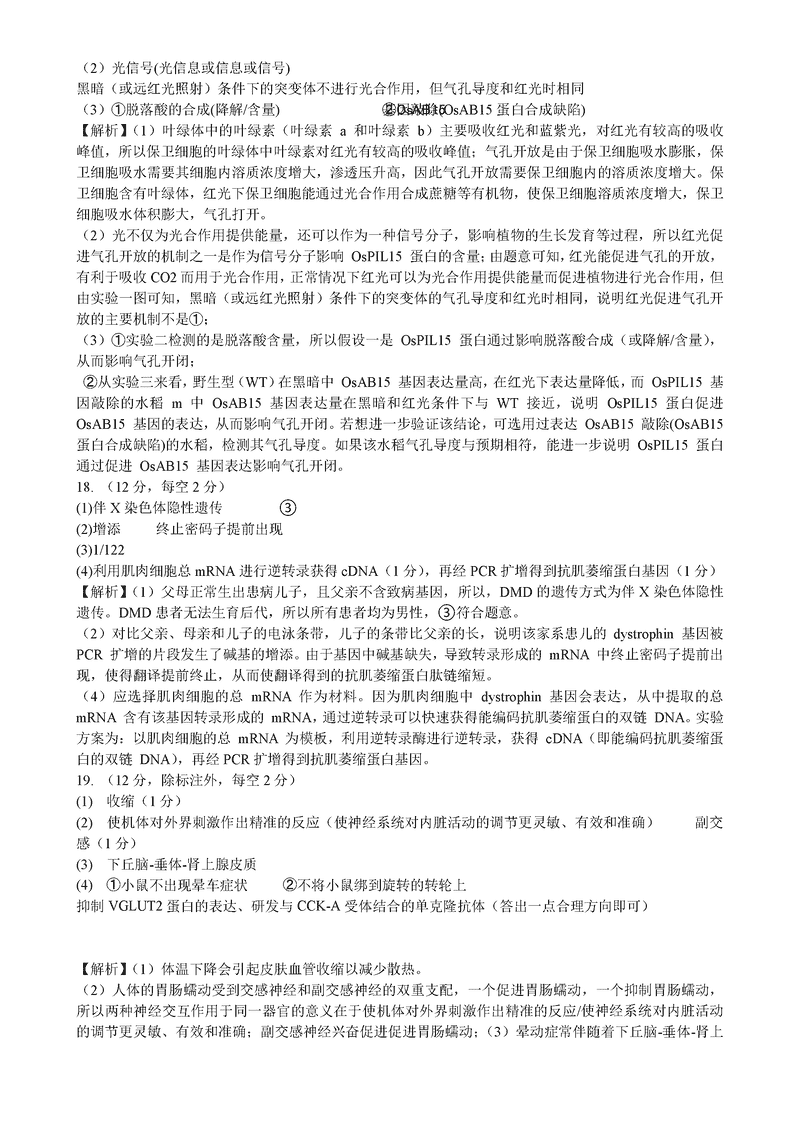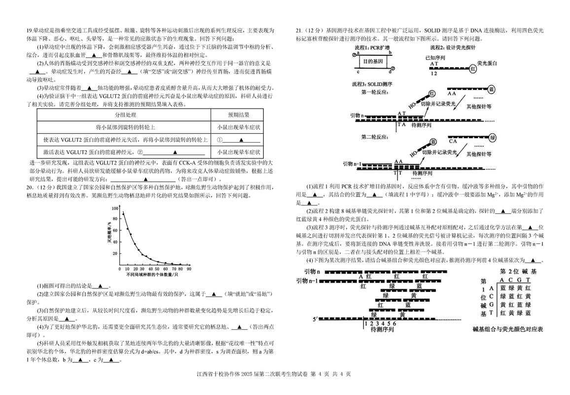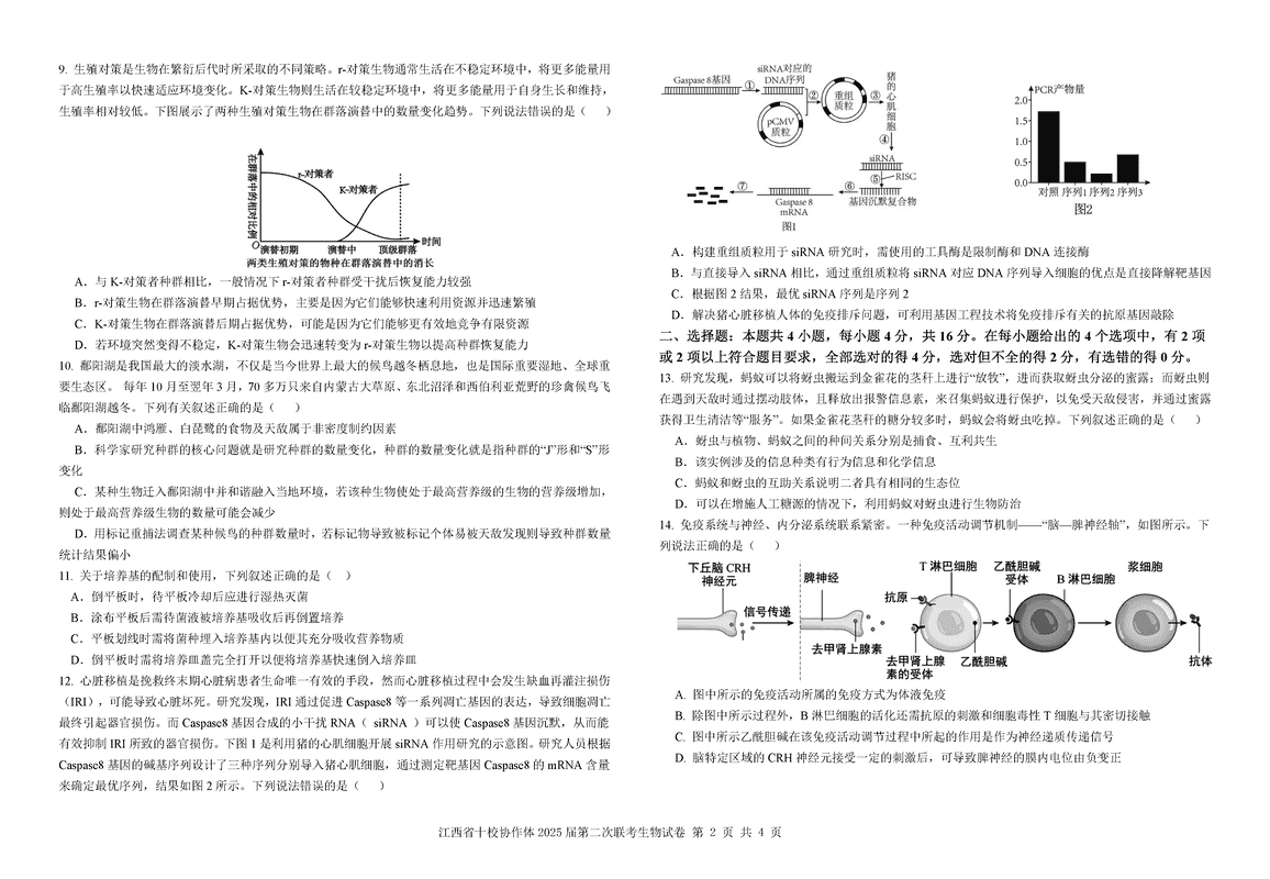 江西省十校协作体2025届高三第二次联考生物试题及答案