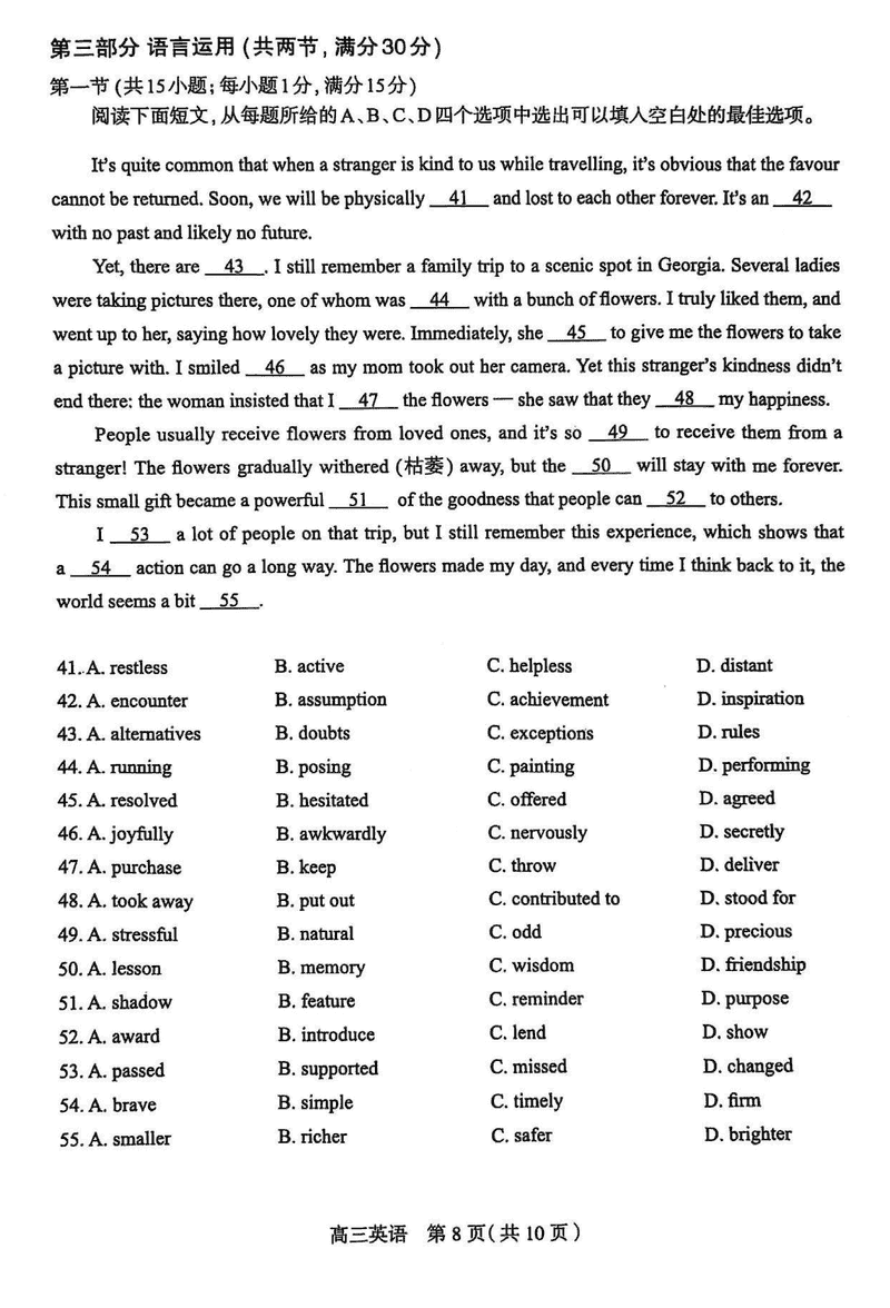 2025届石家庄市高三质检(二)英语考试已于近日开考,为方便考生考后及时查看考试情况,查漏补缺、弥补不足,本文整理了试题答案解析相关信息!
