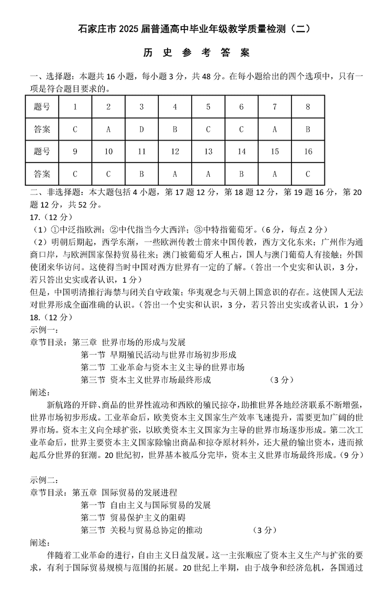2025届石家庄市高三质检(二)历史考试已于近日开考,为方便考生考后及时查看考试情况,查漏补缺、弥补不足,本文整理了试题答案解析相关信息!