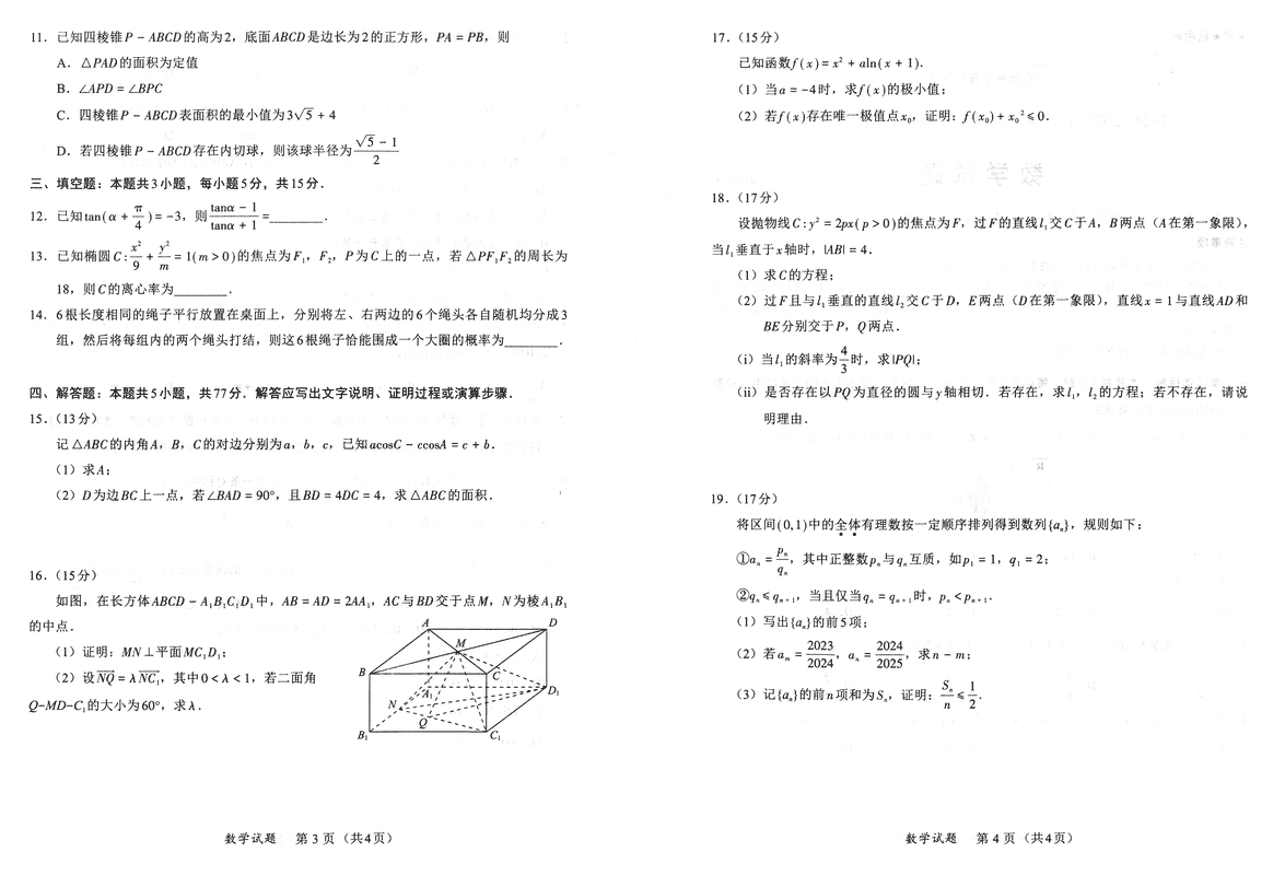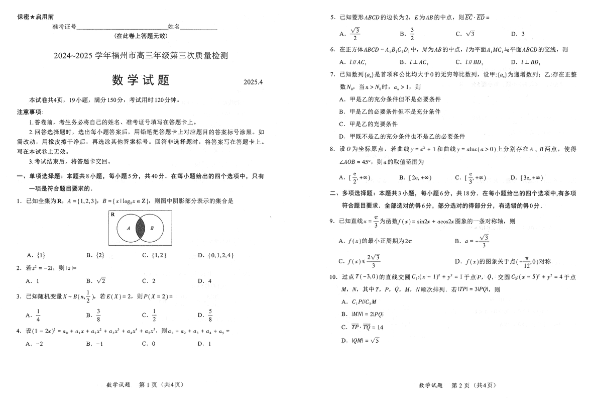 福建2025年4月高三九市联考数学试题及答案 时间:2025-04-10 福建 数学试题 福建2025年4月高三九市联考数学考试已于近日开考,为方便考生考后及时查看考试情况,查漏补缺、弥补不足,本文整理了试题答案解析相关信息! 汇总:福建2025年4月高三九市联考试题及答案汇总 数学试题及答案解析
